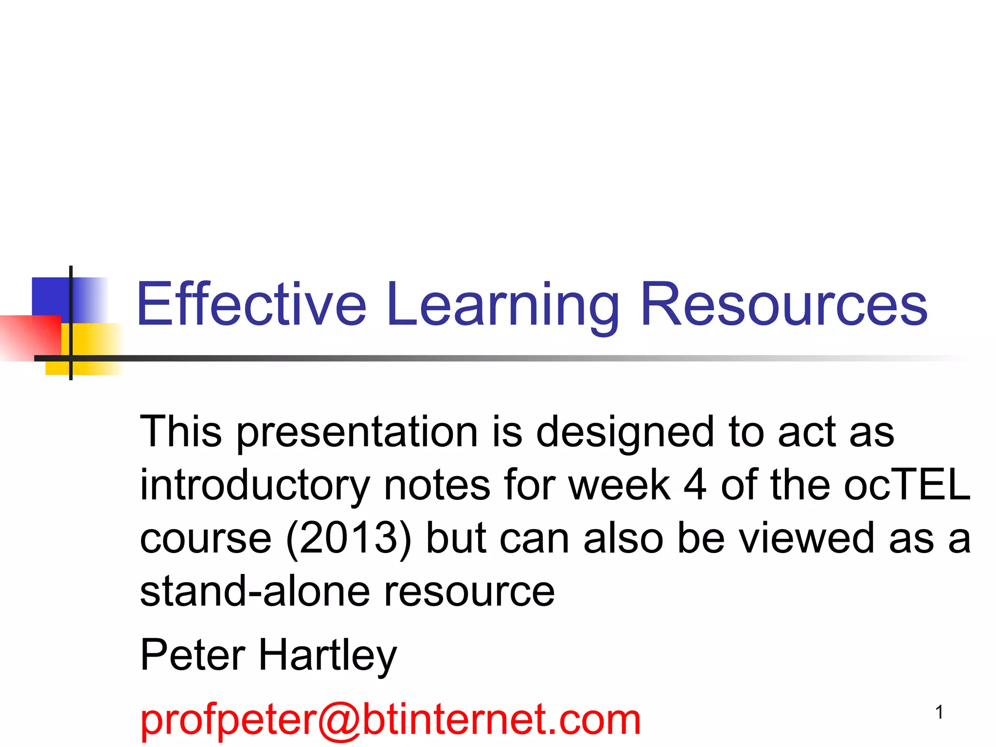 The presentation by Peter Hartley explores the use of effective learning resources in the context of new technologies for education. It discusses how these resources can transform student learning by offering various formats, promoting engagement, and allowing for personalized learning experiences. Additionally, it highlights the need to rethink traditional teaching methods and the importance of adaptive technologies and Open Educational Resources (OER).