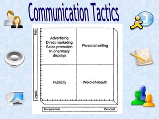 The document discusses the communication process in marketing, especially within the pharmaceutical sector, highlighting the importance of integrated marketing communication strategies. It emphasizes the roles of promotional objectives, unique selling propositions, and market segmentation in developing effective marketing campaigns. The document outlines various promotional tools and the significance of aligning communication efforts for maximum impact.