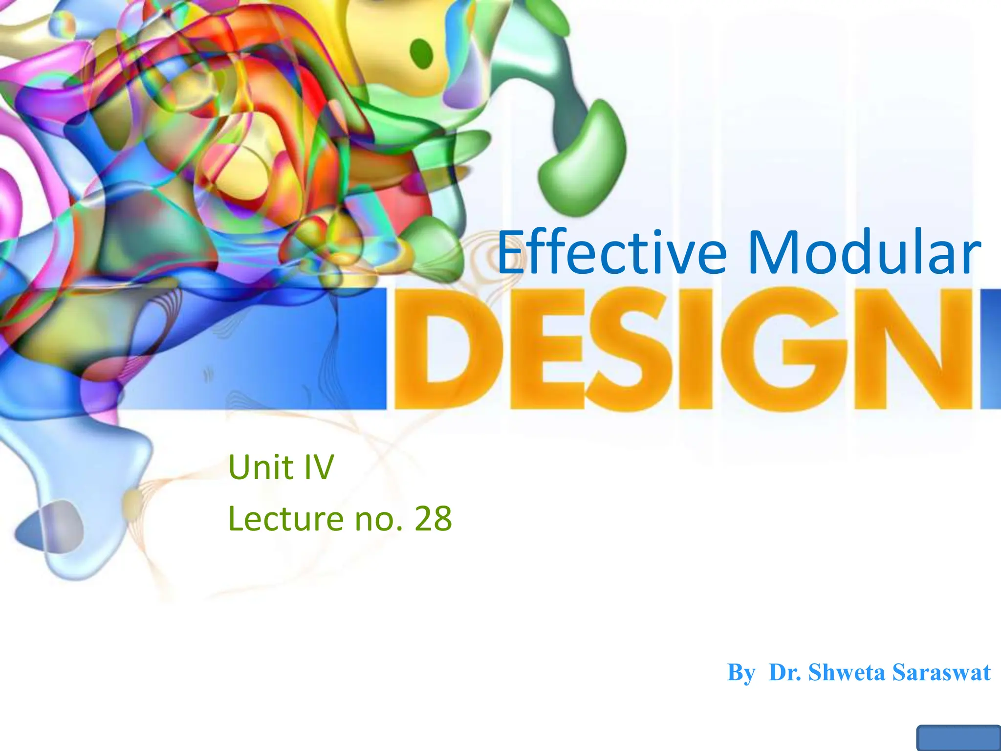The document provides an overview of modular design in software engineering, emphasizing the importance of creating independently functioning modules that minimize interdependencies and facilitate easier maintenance and modification. It discusses the advantages and disadvantages of modularity, criteria for effective modular designs, and key concepts such as coupling and cohesion. The conclusion reiterates that achieving modularity requires well-defined abstractions and clear interfaces between modules.