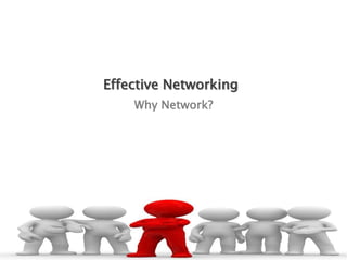 Effective networking involves developing relationships with people who can help your clients or who your clients can help. It is about creating an ecosystem where value is exchanged. When establishing a network, consider including people with aligned goals to your clients who can help or be helped. Maintaining the network professionally through regular meetings, referring business, attending events purposefully and using social media dynamically helps strengthen relationships.
