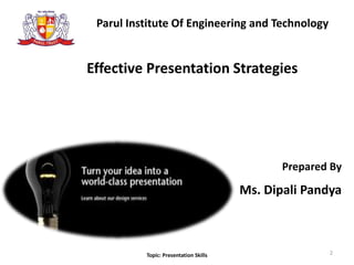 The document outlines effective presentation strategies, focusing on presentation skills, audience understanding, and content organization. It provides ten tips for impactful presentations, emphasizes the importance of visual aids, and discusses non-verbal communication elements like kinesics, proxemics, and paralinguistics. The conclusion reiterates that successful oral presentations require careful planning, preparation, and practice.