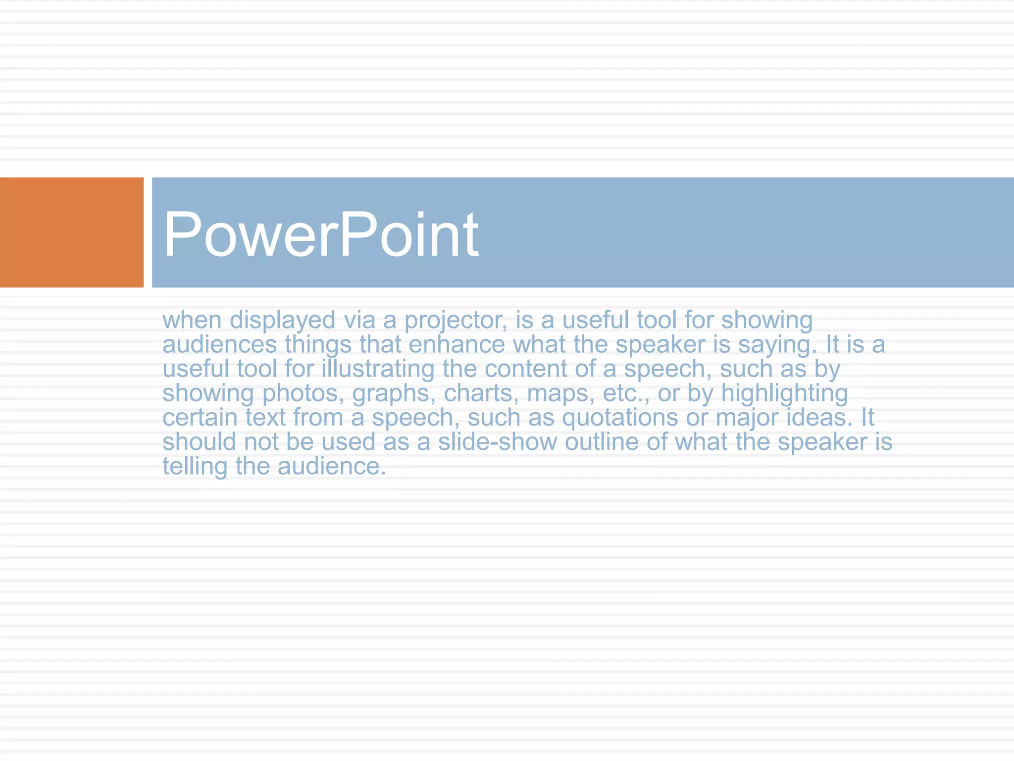 This document provides tips for effectively using PowerPoint in presentations. It recommends starting with a solid content outline before designing slides. Slides should have sparse content with no more than 8 lines of text per slide. Text should use high contrast colors and a large font size for readability. Transitions and animations should generally be avoided. Presenters should rehearse and focus on engaging the audience rather than relying on the slides. PowerPoint should enhance but not replace an oral presentation.