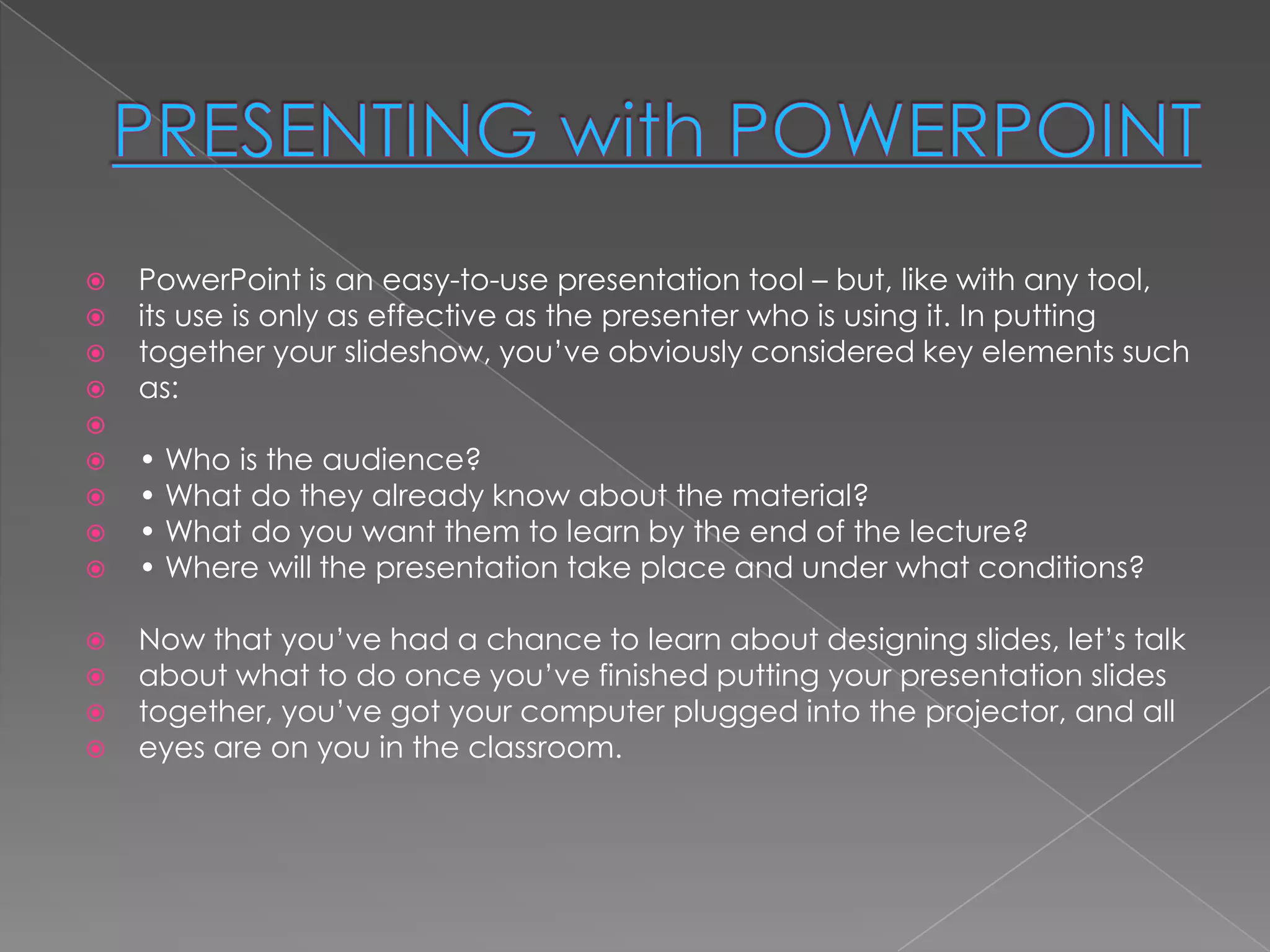 This document provides 10 best practices for using PowerPoint effectively when giving presentations: 1) Consider the purpose and use of handouts, 2) Minimize the number of slides, 3) Don't just read the slides and engage the audience, 4) Maintain audience attention on you rather than the slides, 5) Time discussions to coincide with new slides, 6) Periodically blank the screen to refocus attention, 7) Make the presentation interactive, 8) Include a variety of media to appeal to different learning styles, 9) Hide the pointer to reduce distractions, and 10) Rehearse the presentation. It also provides tips for navigating slides during the presentation.