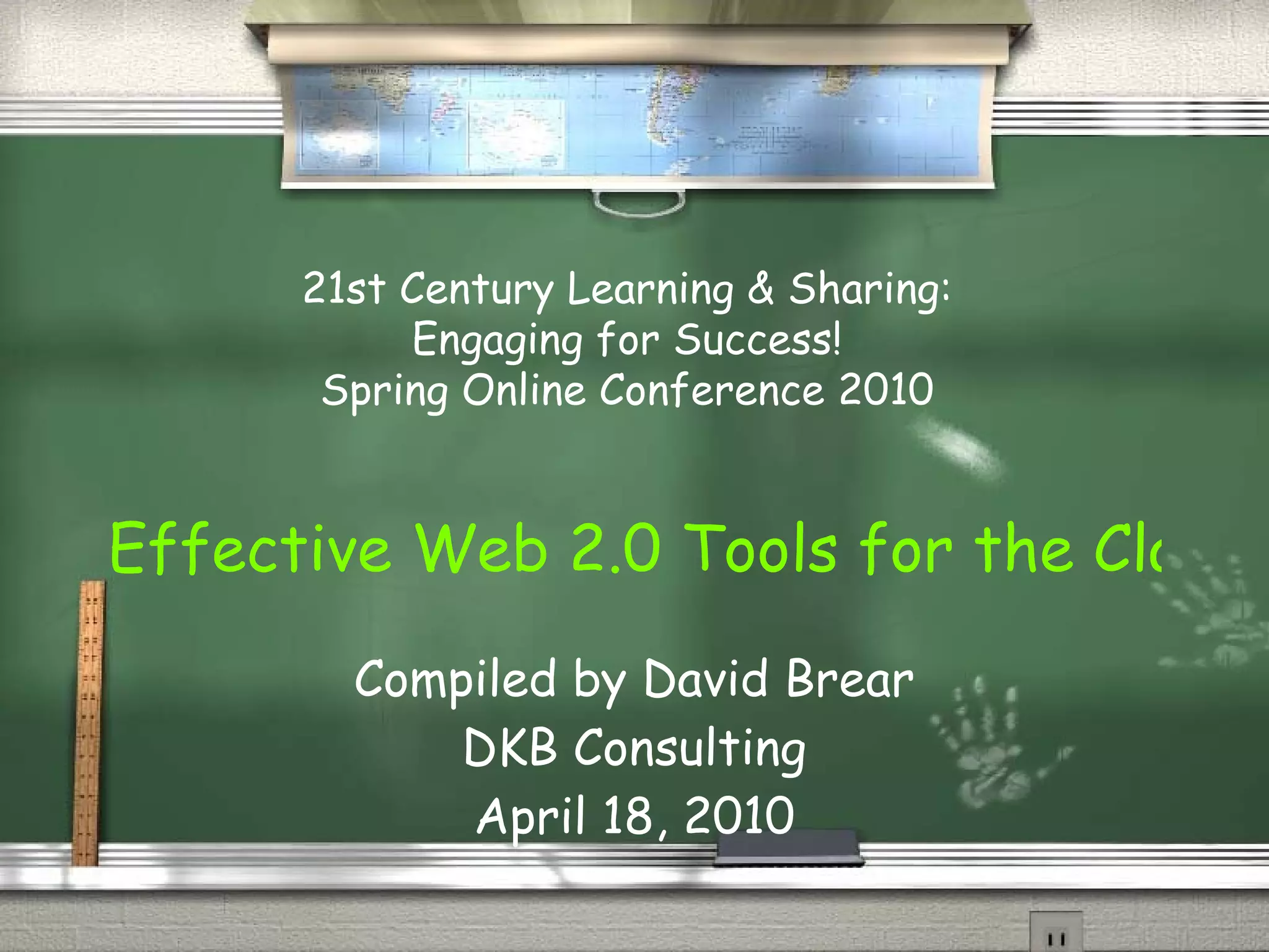 The document, compiled by David Brear, discusses effective Web 2.0 tools for the classroom, emphasizing their accessibility and ease of use for both teachers and students. It covers a variety of applications, including blogging, multimedia tools, and collaborative platforms, aimed at enhancing 21st-century learning. Specific tools like Plagium, Vocaroo, and EdTechTalk are highlighted for their functionalities in education.
