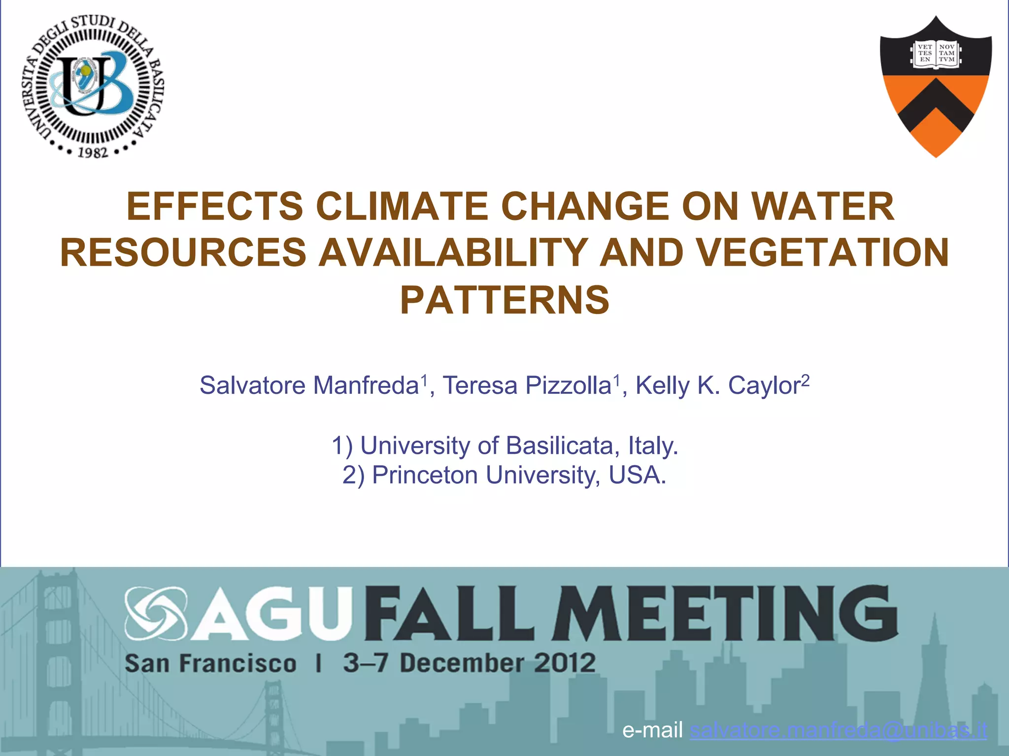 1) The document describes a model that couples patterns of vegetation, soil, and climate to generate patterns of water balance and soil moisture distribution within a basin in New Mexico.