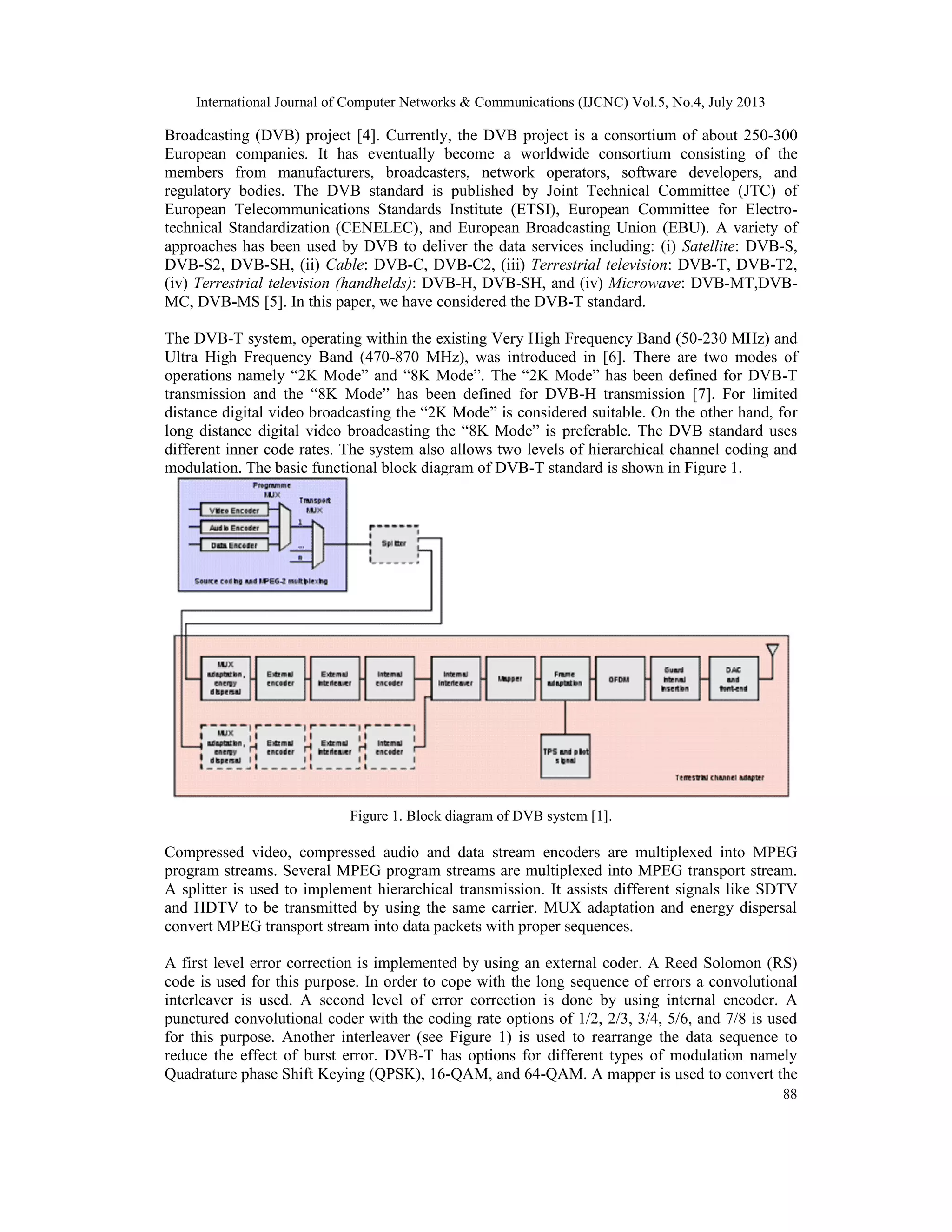 This document discusses filters used in DVB-T receivers and their effect on performance under different channel conditions. It investigates DVB-T system performance under AWGN, Rayleigh, and Ricean fading channels. It also examines using Butterworth, Chebyshev, and elliptic filters in the receiver to improve performance. The simulation results show that carefully selecting the receiver filter based on the channel conditions can optimize DVB-T system performance.