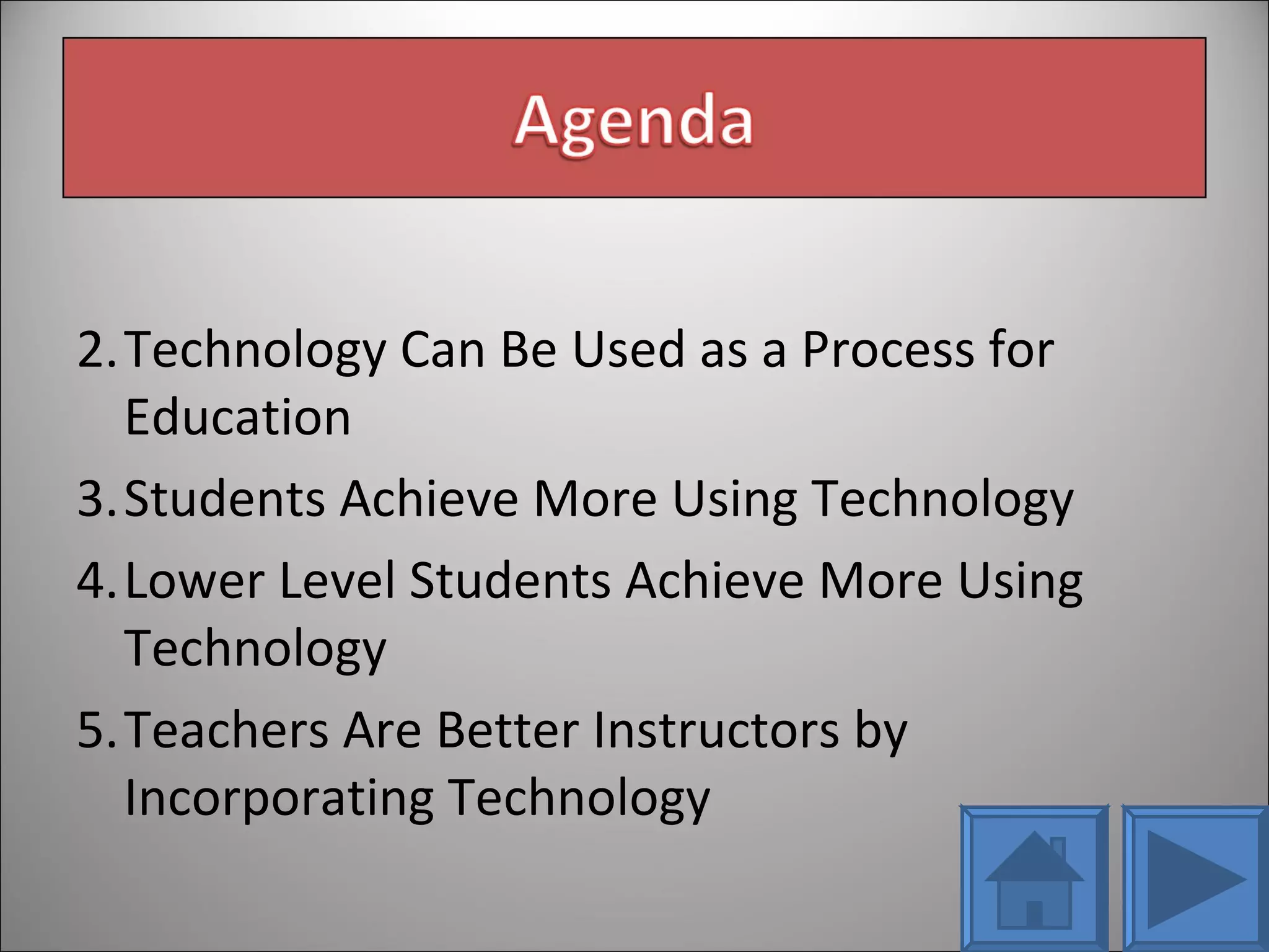 The document presents research on the effects of technology on student achievement. It finds that technology can improve pedagogy and engage students, helping all students achieve more, including lower-level students and English language learners. It also finds that teachers are better able to incorporate research-based instructional strategies and plan more efficiently when using technology.