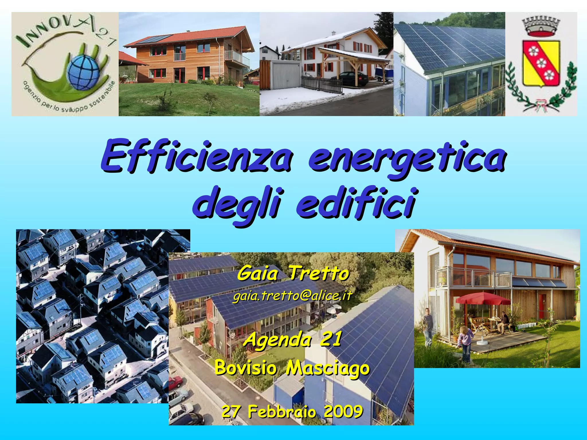 Il documento tratta dell'efficienza energetica negli edifici in Italia, enfatizzando l'importanza di ridurre i consumi energetici che rappresentano una quota significativa delle emissioni di CO2. Vengono presentati vari interventi per migliorare l'efficienza energetica, come l'isolamento, l'utilizzo di tecnologie avanzate e l'adozione di fonti rinnovabili. Infine, si evidenzia il potenziale di risparmio economico e ambientale derivante dalla razionalizzazione dei consumi energetici.