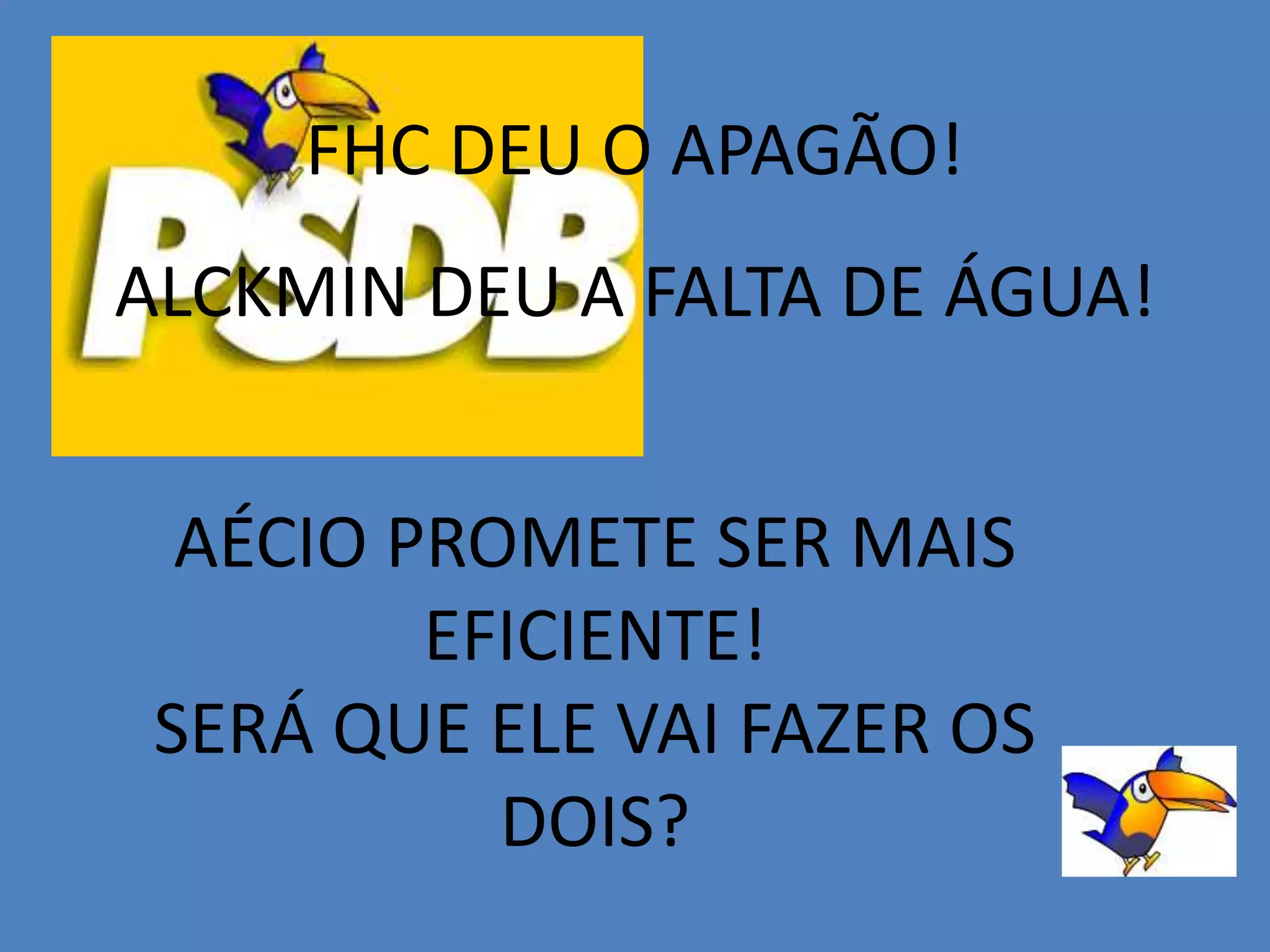 The document criticizes FHC for a blackout, Alckmin for a water shortage, and promises that Aécio will be more efficient if elected, questioning whether he can solve both the blackout and water shortage problems.