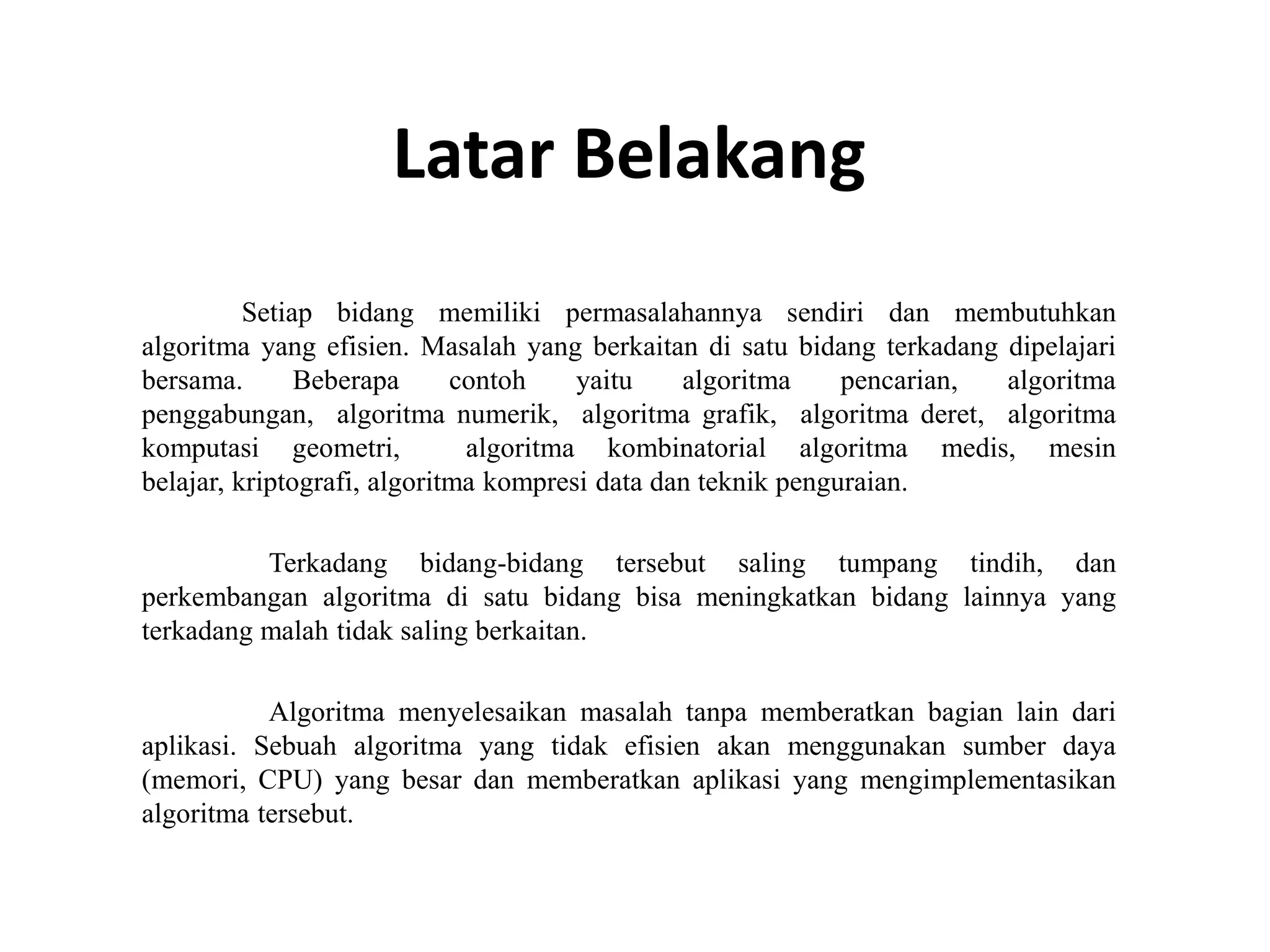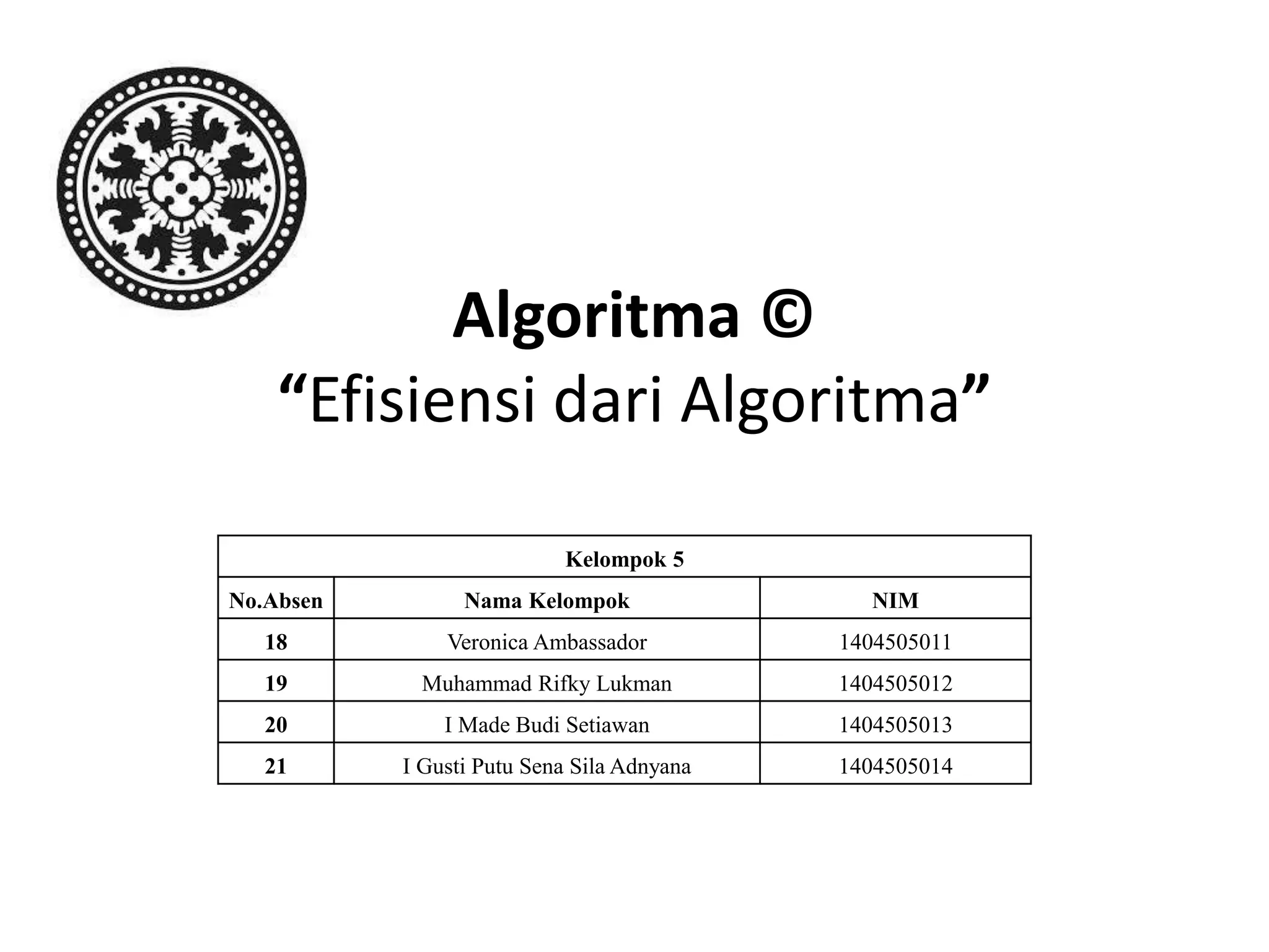 Dokumen ini membahas tentang efisiensi algoritma, menyoroti pentingnya algoritma yang tidak hanya memberikan hasil yang benar, tetapi juga melakukannya dalam waktu dan memori yang efisien. Faktor-faktor yang mempengaruhi efisiensi mencakup banyak langkah, jenis dan ukuran input data, serta alokasi memori. Kesimpulannya, algoritma yang efisien dapat membantu mengurangi waktu eksekusi dan penggunaan memori, sehingga meningkatkan kinerja aplikasi.