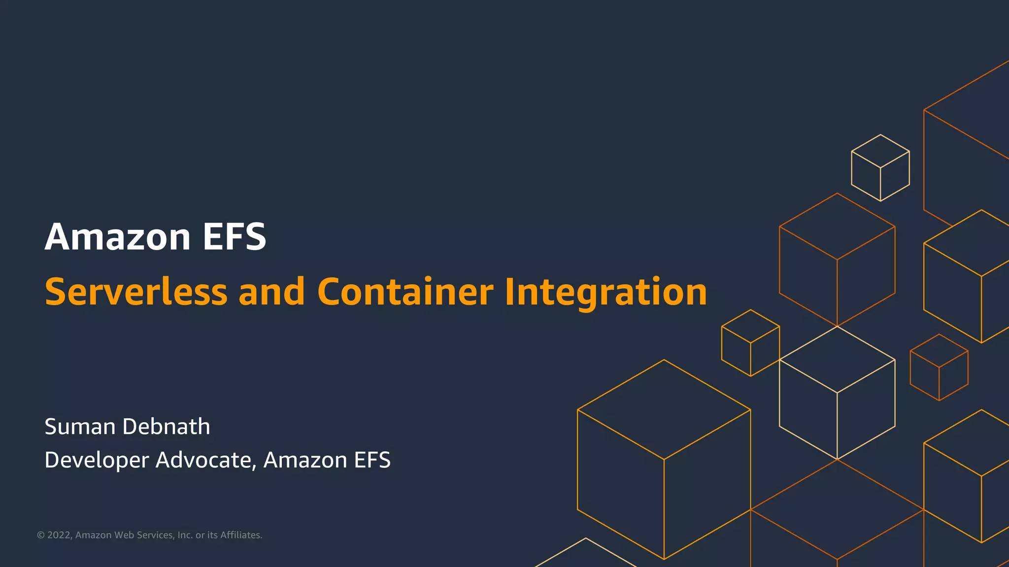 The document discusses Amazon EFS (Elastic File System) and how it can be used with serverless and containerized applications. Some key points discussed include: