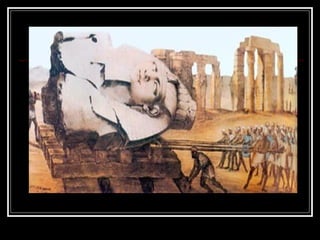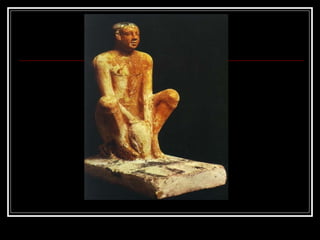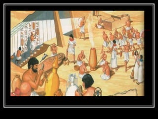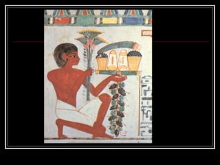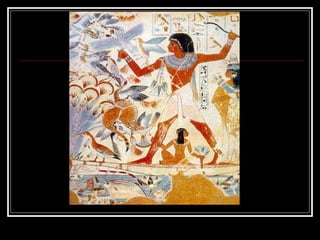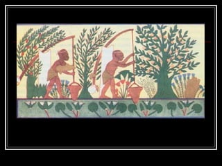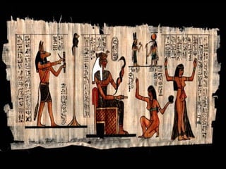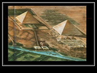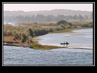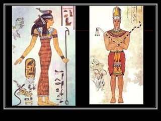 Документ описывает историю и культуру древнего Египта, начиная с зарождения цивилизации около 5000 лет назад вдоль реки Нил. В нем рассматриваются важные аспекты жизни египтян, такие как сельское хозяйство, архитектура, одежда, а также значимость Нила как источника жизни и бога Хапи. Упомянуты также достижения археологии и культурные особенности, включая одежду и прически различного сословия.