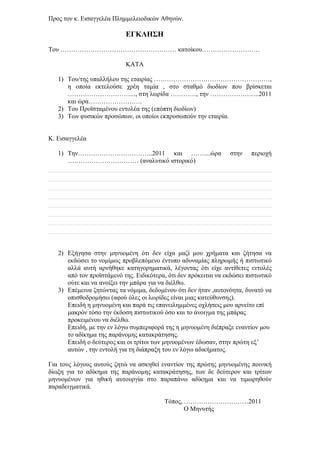 Για τους λόγους αυτούς ζητώ να ασκηθεί εναντίον της πρώτης μηνυομένης ποινική