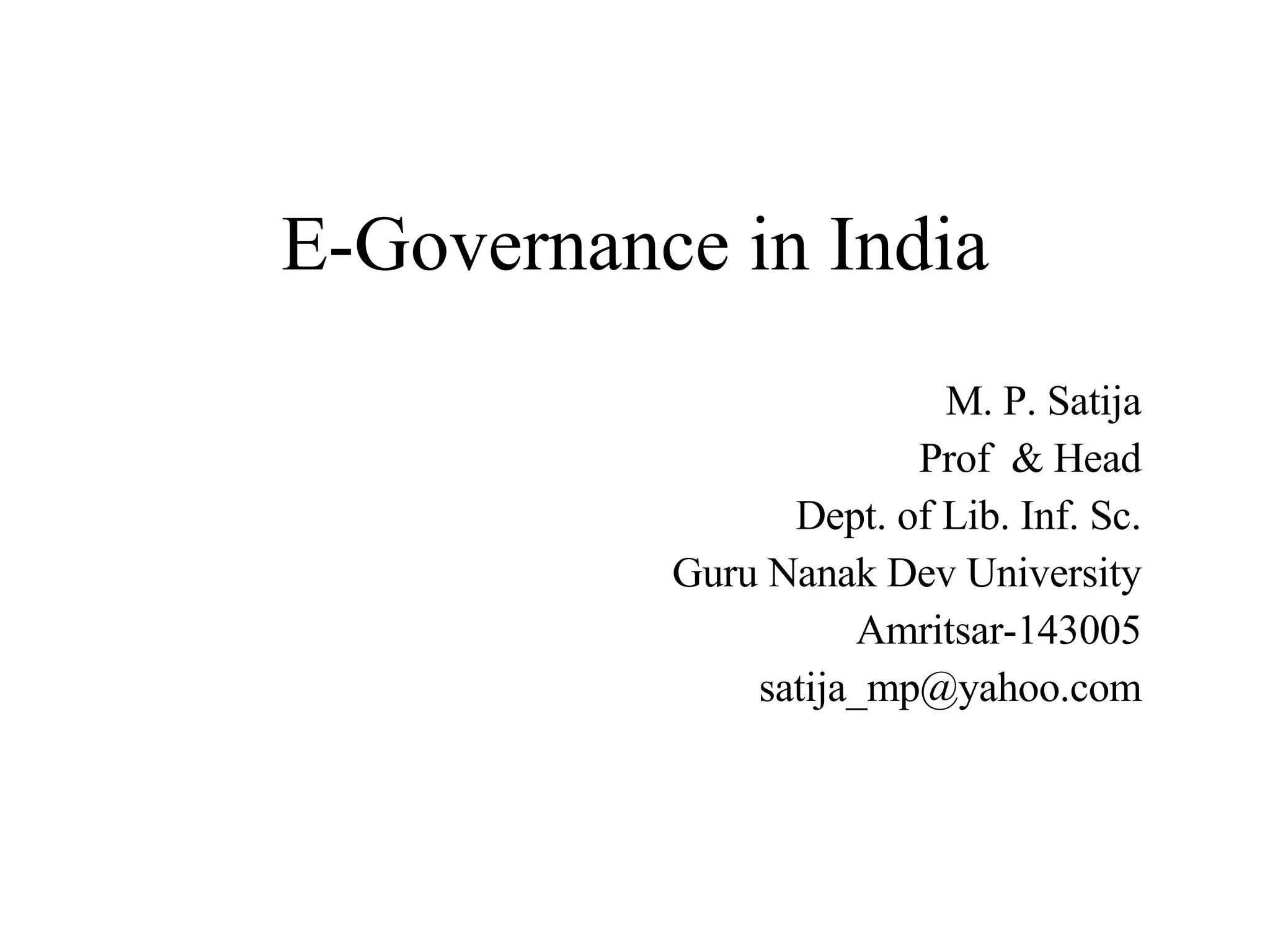 This document provides an overview of e-governance initiatives in India. It discusses how e-governance aims to provide online access to government services and information for citizens. Key initiatives at the national level include the National e-Governance Plan and various ministries developing online presences. States have also implemented e-governance projects like Bhoomi in Karnataka. NGOs and private organizations supplement these efforts through programs like Tara Haat and Drishtee that deliver e-services to rural areas.