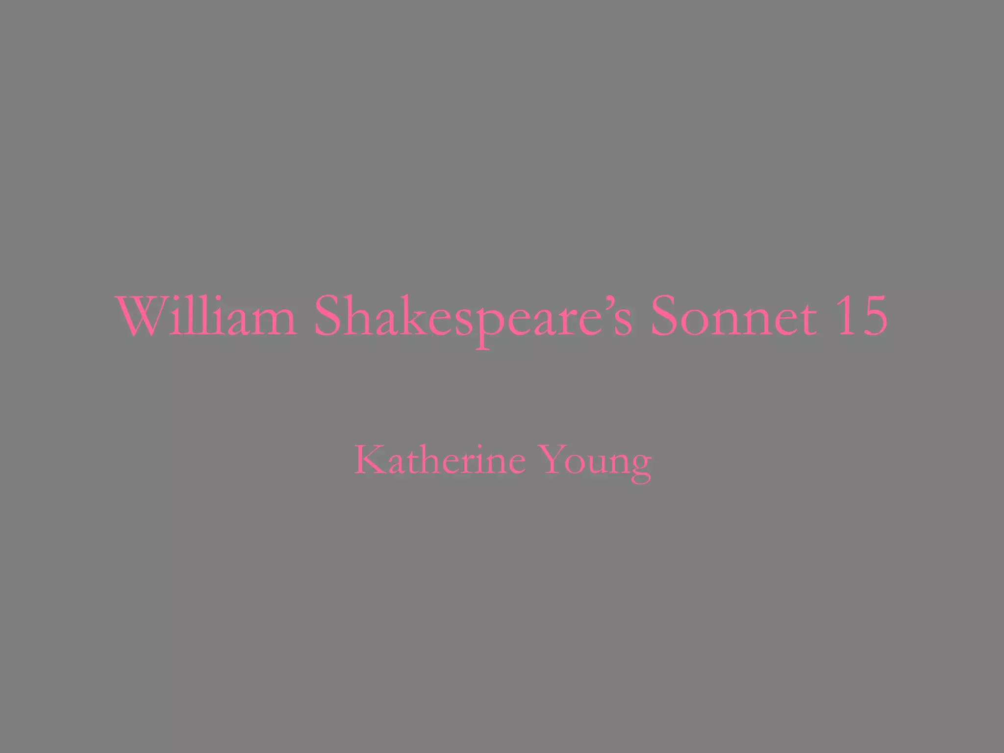 Sonnet 15 by William Shakespeare addresses the ephemeral nature of youth and beauty. The poem notes how everything in nature, including men, grows to perfection for only a brief moment before fading. It then directly addresses the subject of the sonnet, telling them that their rich youth is currently on display but will soon give way to decay without the poet's ability to immortalize their beauty through verse. The sonnet promises that the poet will use his writing to effectively graft new youth onto the subject as their natural youth fades, fighting against the ravages of time through poetry.