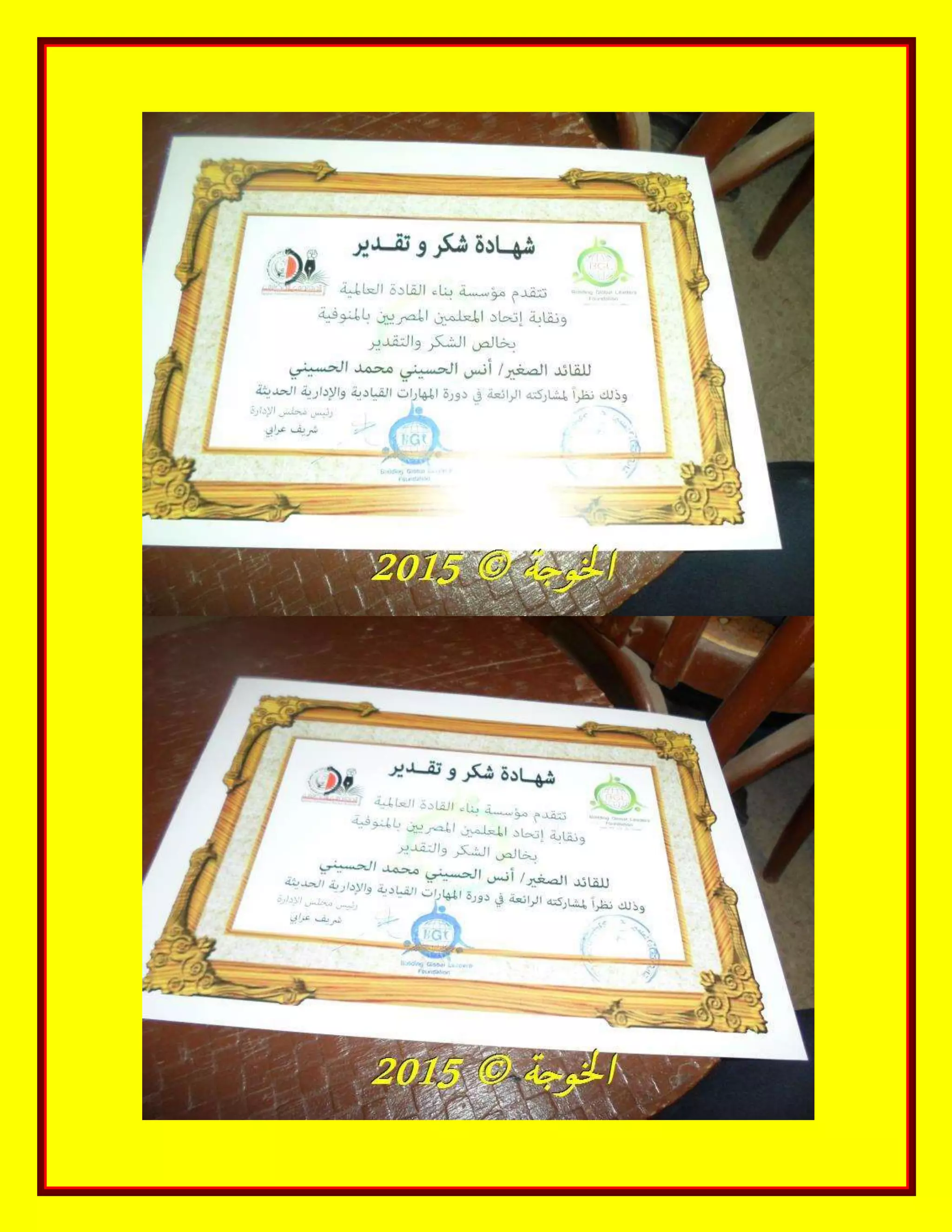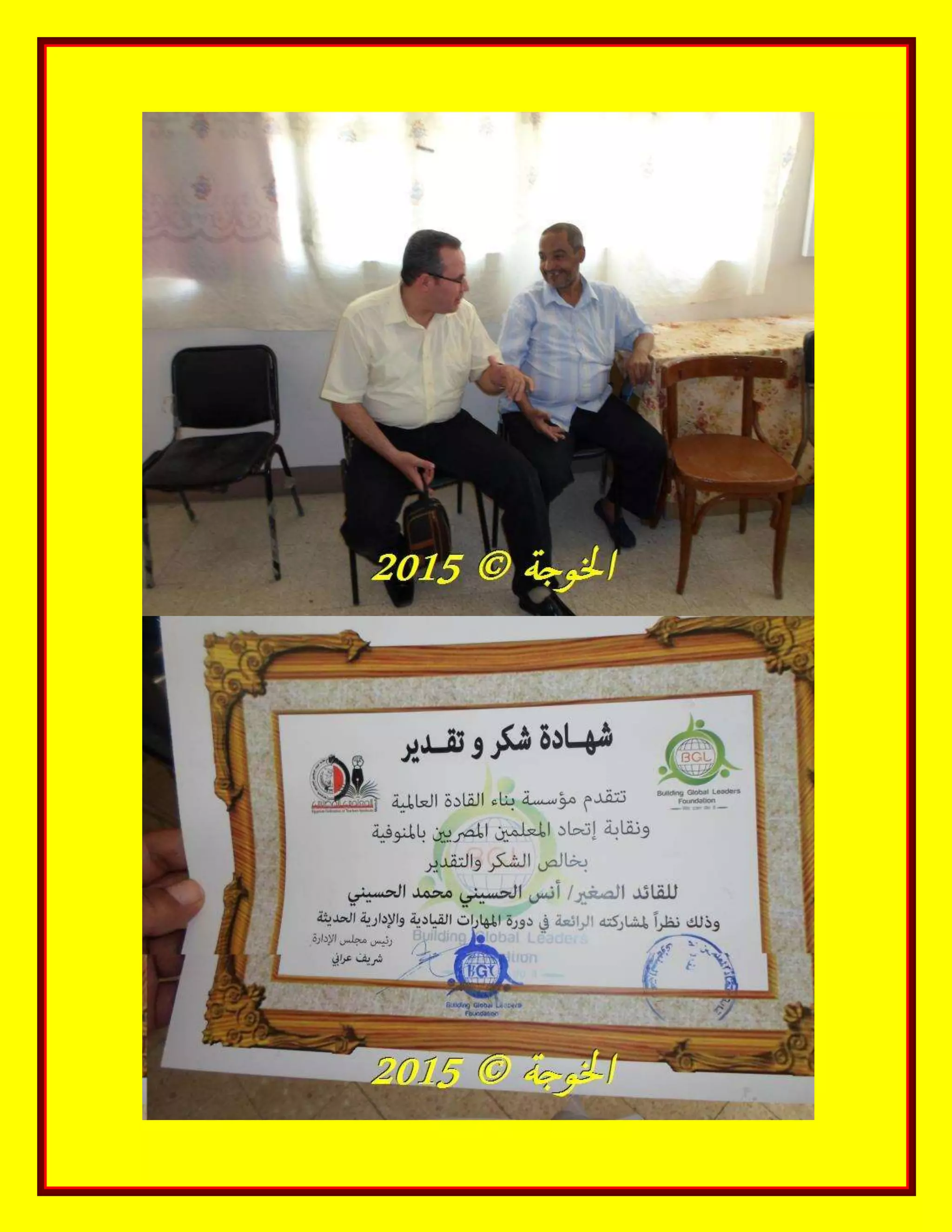 تنظم نقابة المعلمين بالمنوفية دورة تعليمية تحت عنوان 'المعلم المحترف' يقدّمها محمد الحسينى يومي 12 و13 يونيو 2015. تسعى هذه الدورة إلى النهوض بالعملية التعليمية من خلال تطوير مهارات المعلمين والتعاون مع مجموعة من القادة والمختصين. يتم الترويج لهذه المنحة عبر وسائل التواصل الاجتماعي مثل فيسبوك وجوجل.