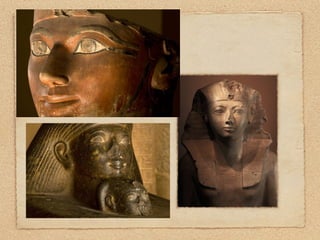 Ancient Egypt relied on the Nile River to support civilization in an otherwise desert region. Egyptians built pyramids as tombs for pharaohs, placing sarcophagi inside, and believed in many gods. They also developed hieroglyphic writing to record and communicate information.