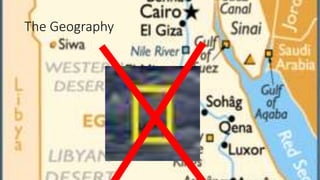 Ancient Egypt had a society centered around the Nile River. They used the river for transportation and irrigation, and also built canals. The geography was mostly desert, so they used sleds to transport heavy objects. Egyptian society highly valued family and children. They also had a complex social hierarchy topped by the powerful pharaoh. Ancient Egyptians developed an elaborate system of embalming the dead and built grand pyramids, temples, and tombs for pharaohs like Seti I, Ramesses II, and Tutankhamun.