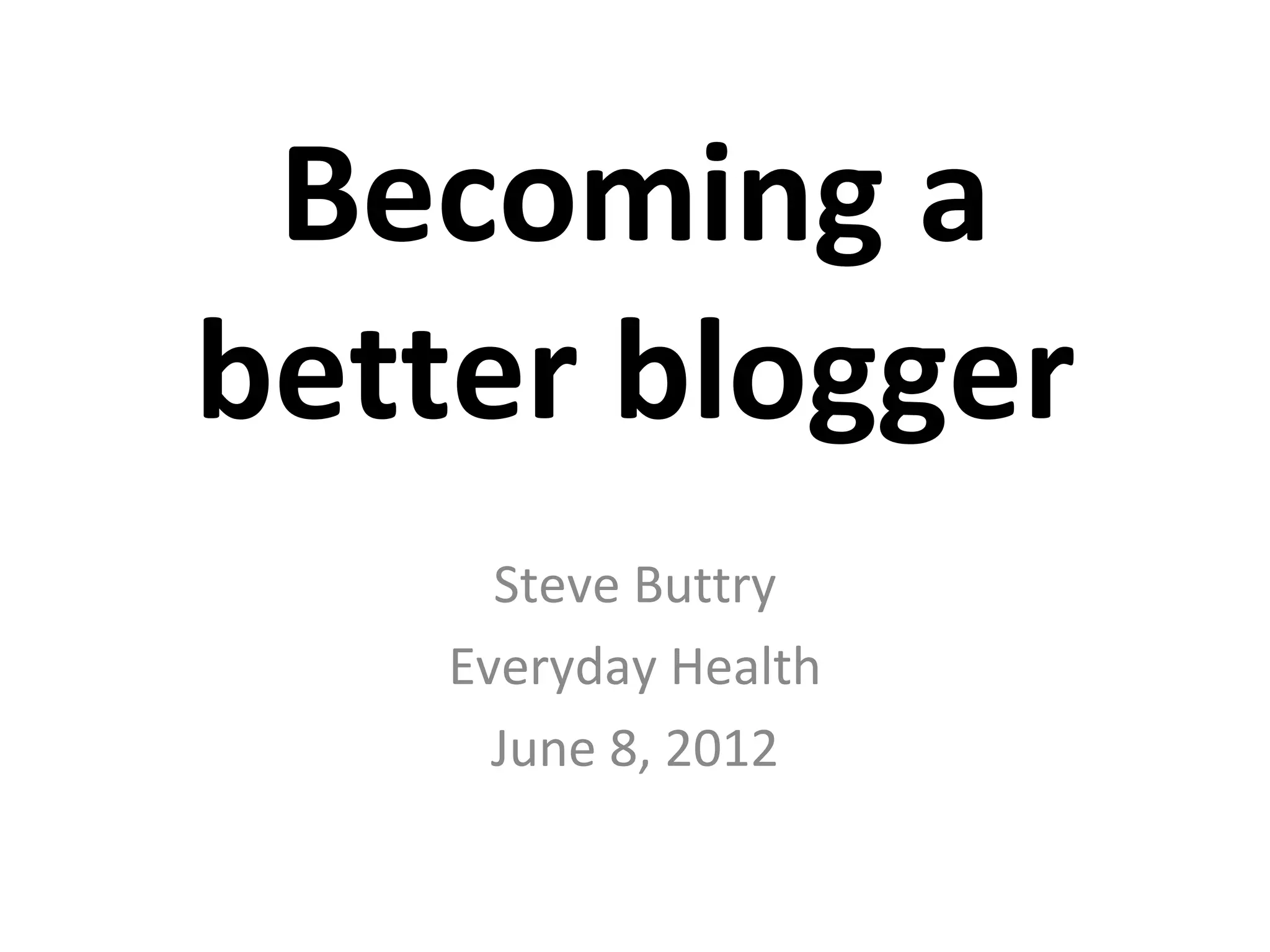 The document provides tips for becoming a better blogger, including focusing on idea, format, writing quality, keywords, links, voice, authority, and engagement. It suggests planning blog content like posts, videos, and social media engagement. Factors in success include idea, format, headlines, writing, links, and frequency. The document emphasizes building authority through accuracy, transparency, and engaging in conversation.