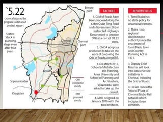 1) The project involves constructing a new peripheral road connecting Ennore Port to Mahabalipuram to improve transportation and reduce traffic congestion.
