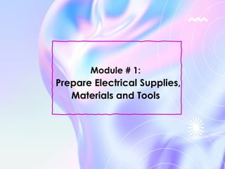 I. Identify eachof the following electrical supplies, materials and tools. Write