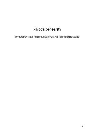 grondexploitatie, dan is het van belang dat zij weten hoe omgegaan wordt met deze risico’s. Voor de
