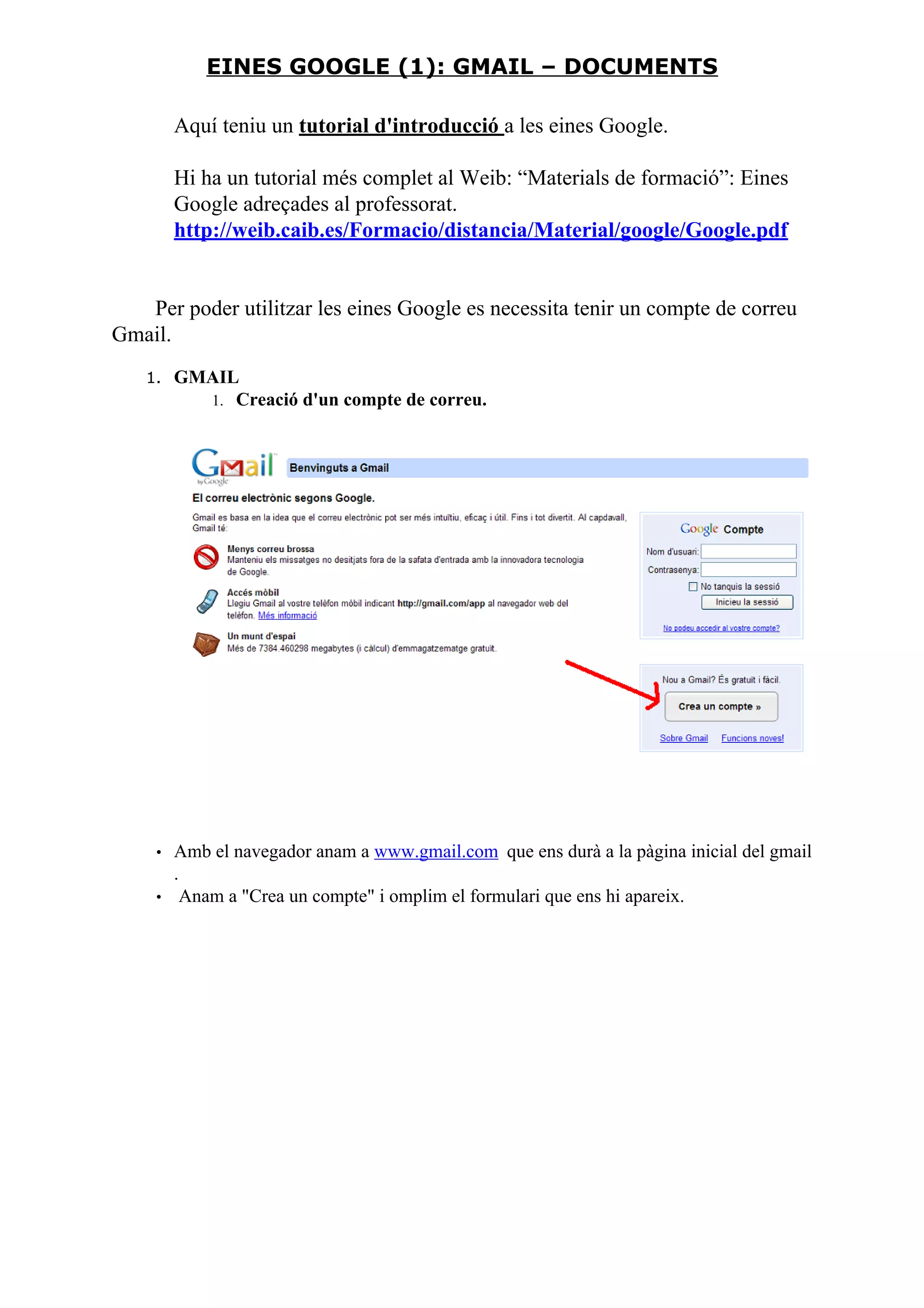 • Amb el navegador anam a www.gmail.com que ens durà a la pàgina inicial del gmail