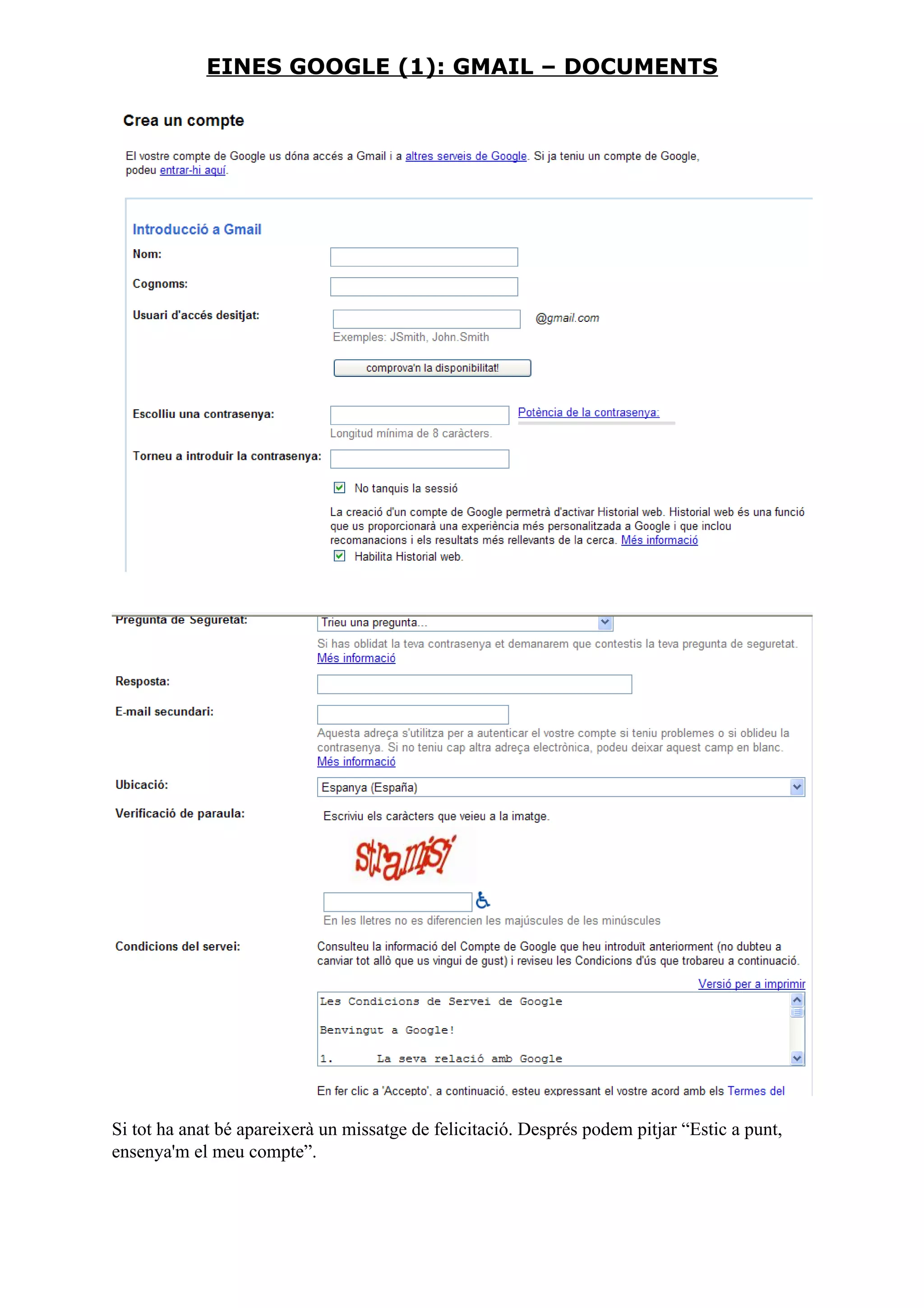 • Anam a "Crea un compte" i omplim el formulari que ens hi apareix.