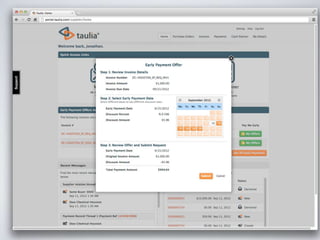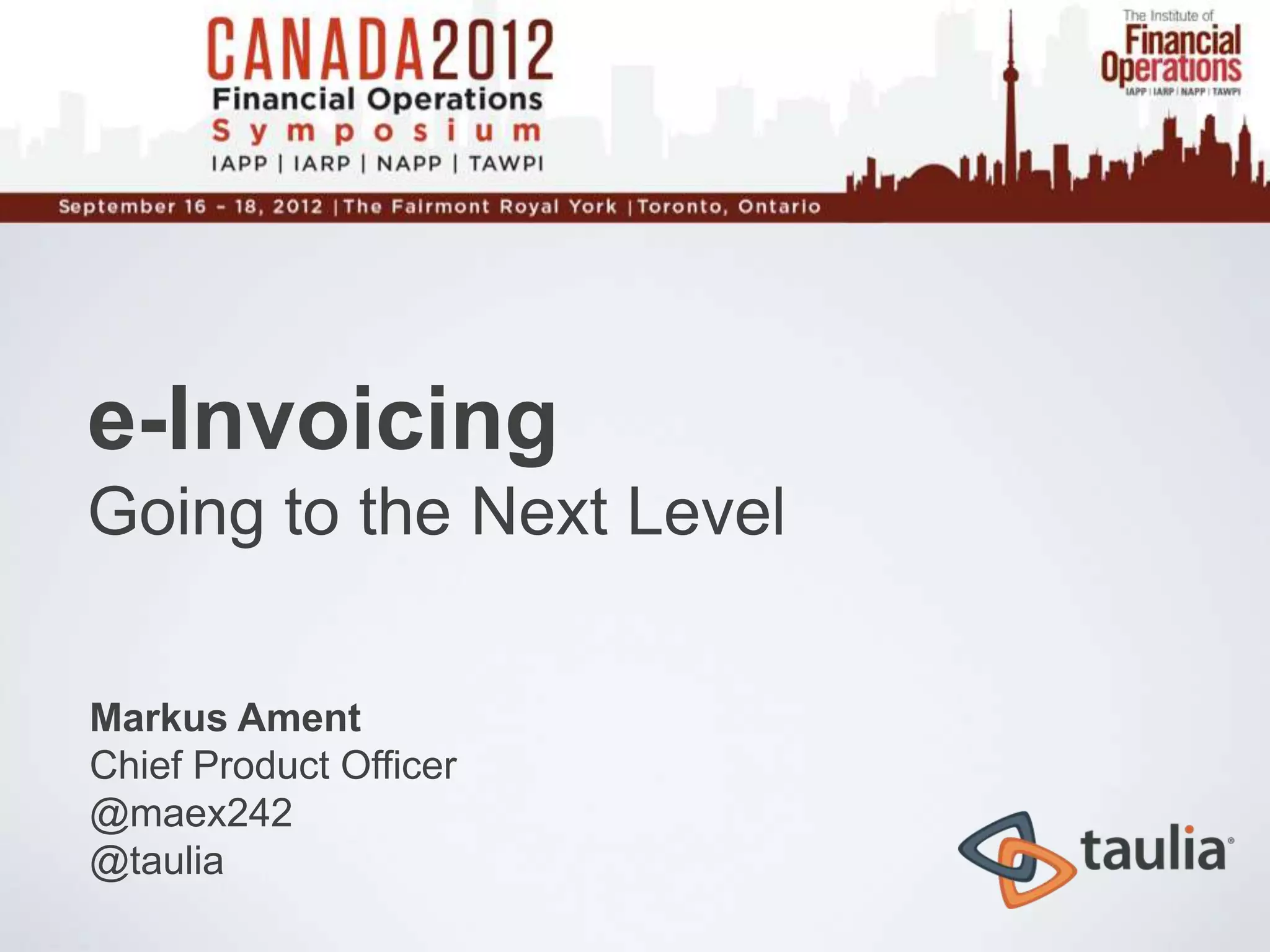 This document summarizes a presentation about advancing e-invoicing. It discusses how e-invoicing can eliminate paper, errors and calls by achieving high supplier adoption. Supplier adoption is driven by offering value like a complete solution, covering all transaction types, interoperability, transparency, no supplier fees and financial benefits like dynamic discounting. Dynamic discounting allows buyers to pay early and save money while suppliers access cheaper financing. Case studies show dynamic discounting solutions generating high ROI for buyers through significant cost savings and high supplier enrollment rates. The vision is for buyers to have free e-invoicing and visibility while suppliers benefit at no cost, creating a win-win through increased profits and better relationships.
