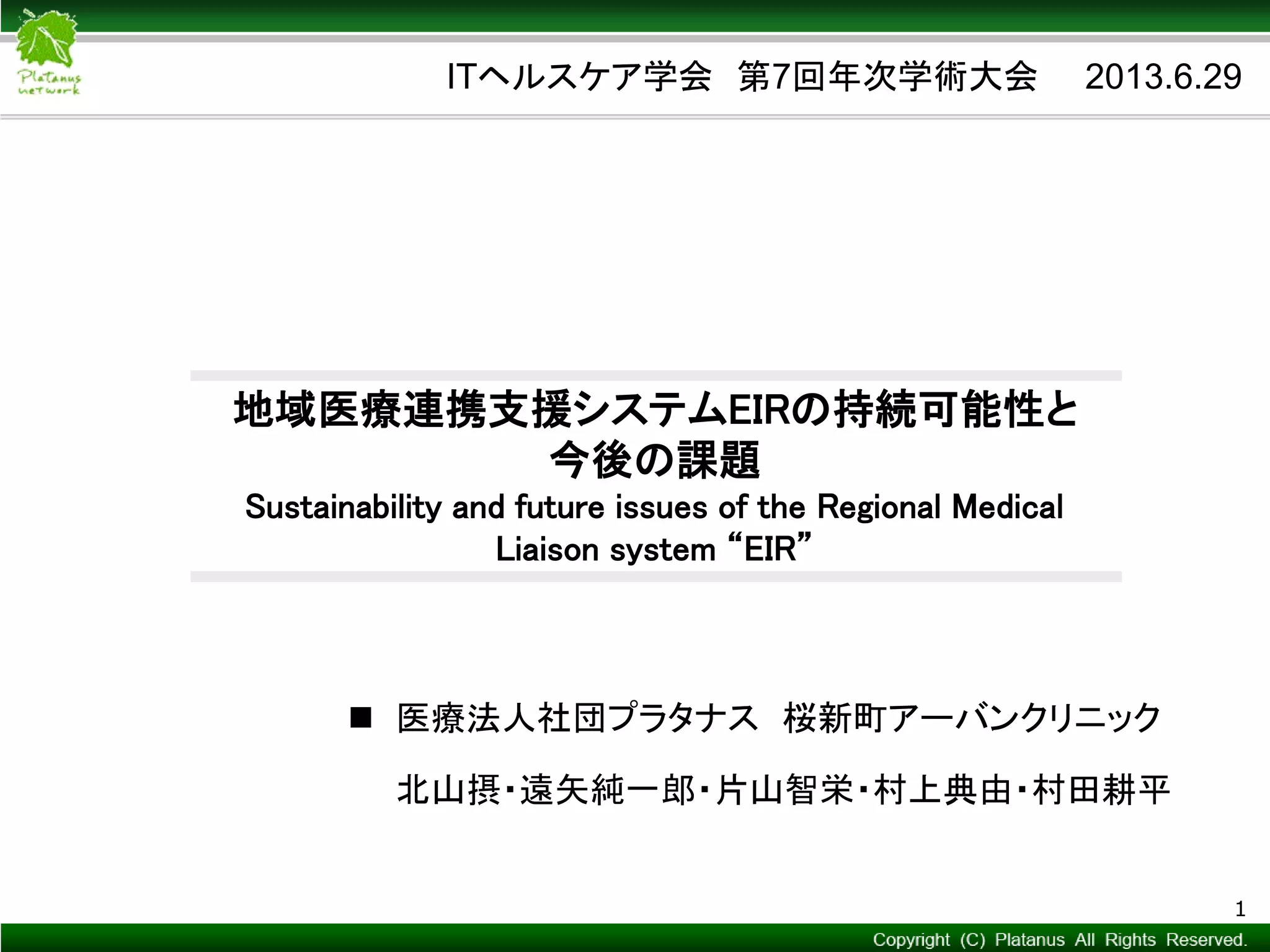 地域医療連携支援システムEirの持続可能性と今後の課題_北山摂