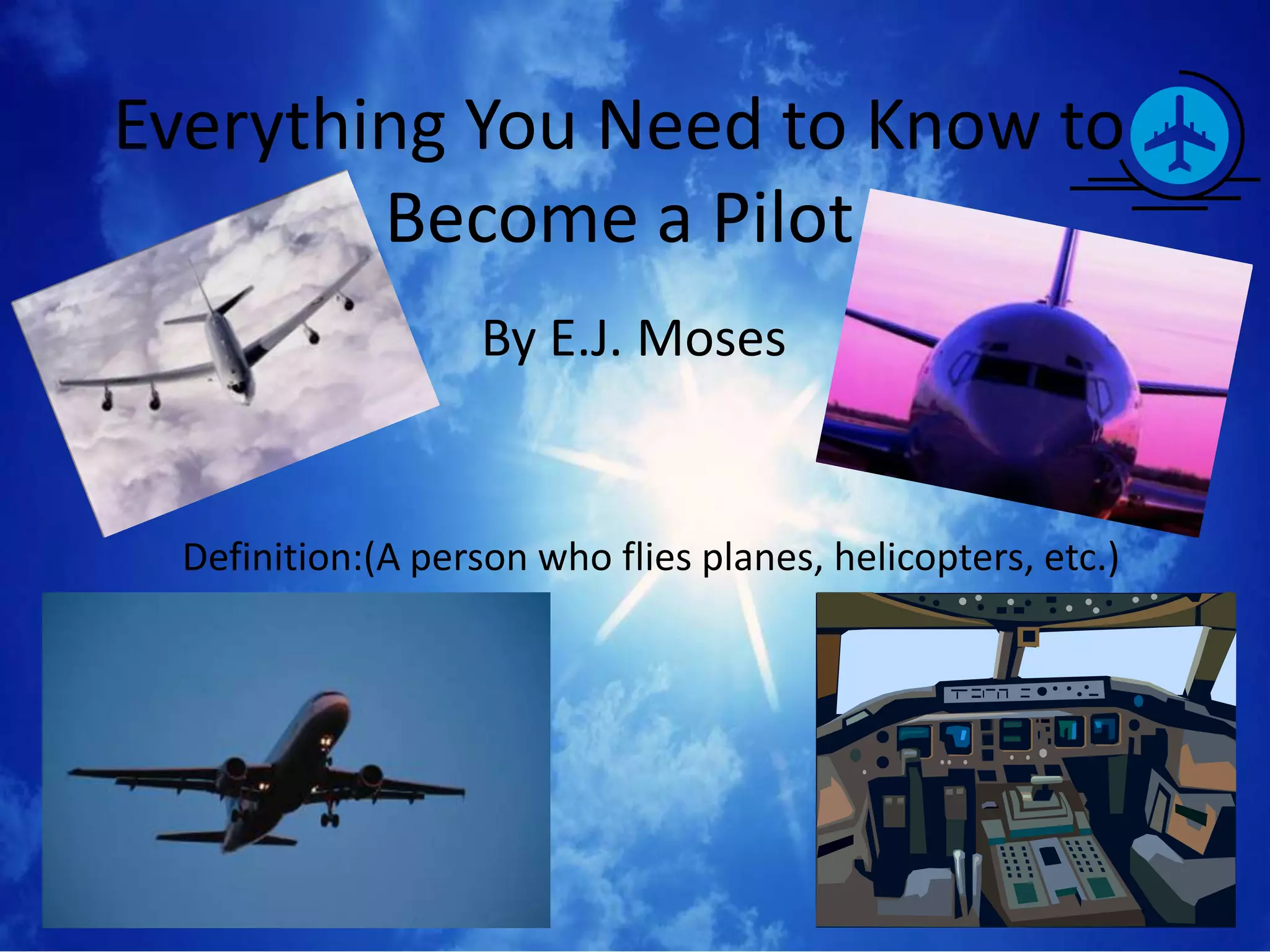 The document provides information about becoming a pilot, including the skills, education, and career path required. It outlines that pilots need a college degree or military experience, must pass written and medical tests, and should study science and math from a young age. It also lists several colleges that offer aviation degrees and major airlines that employ pilots. Potential challenges include weaknesses in math skills and dealing with high-pressure situations during flight tests or emergencies.