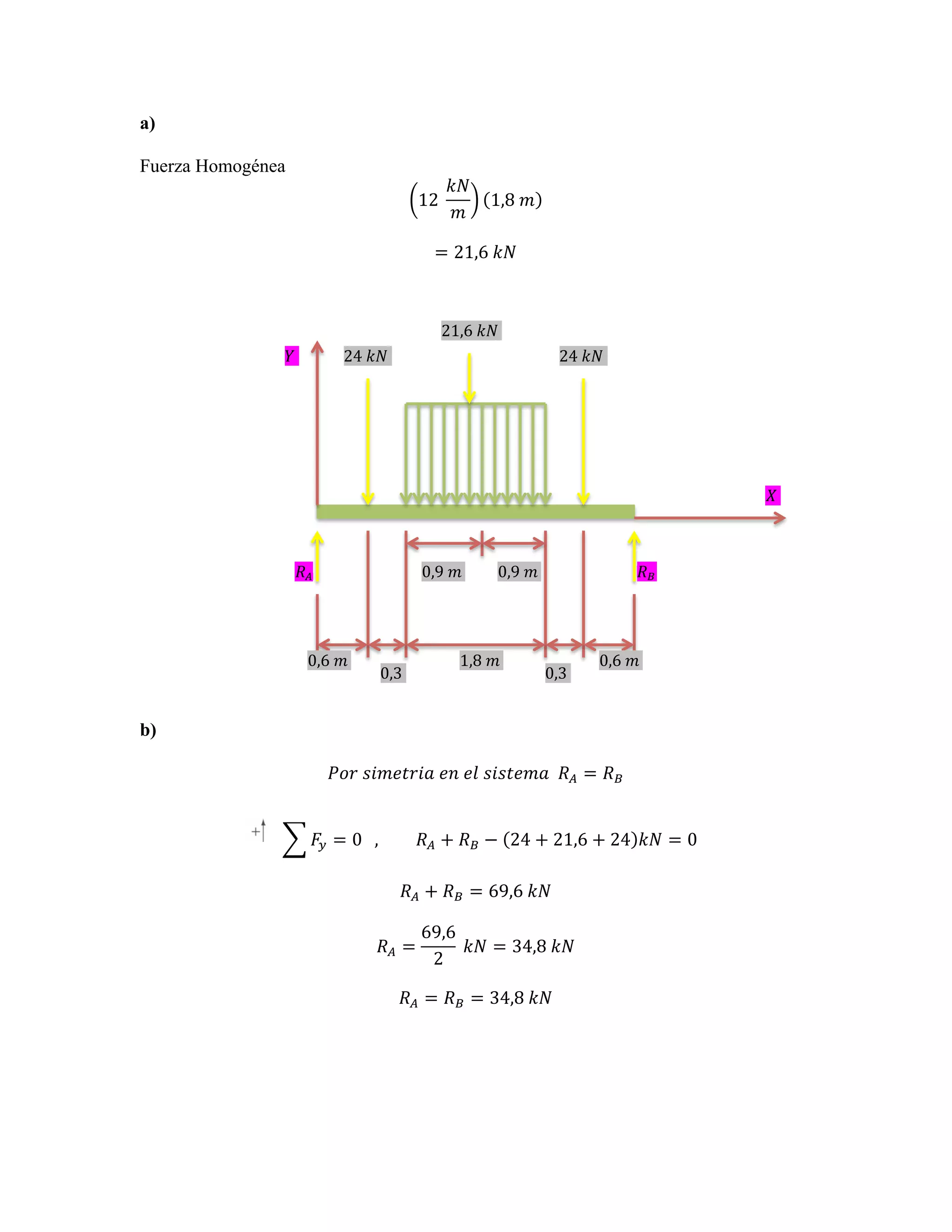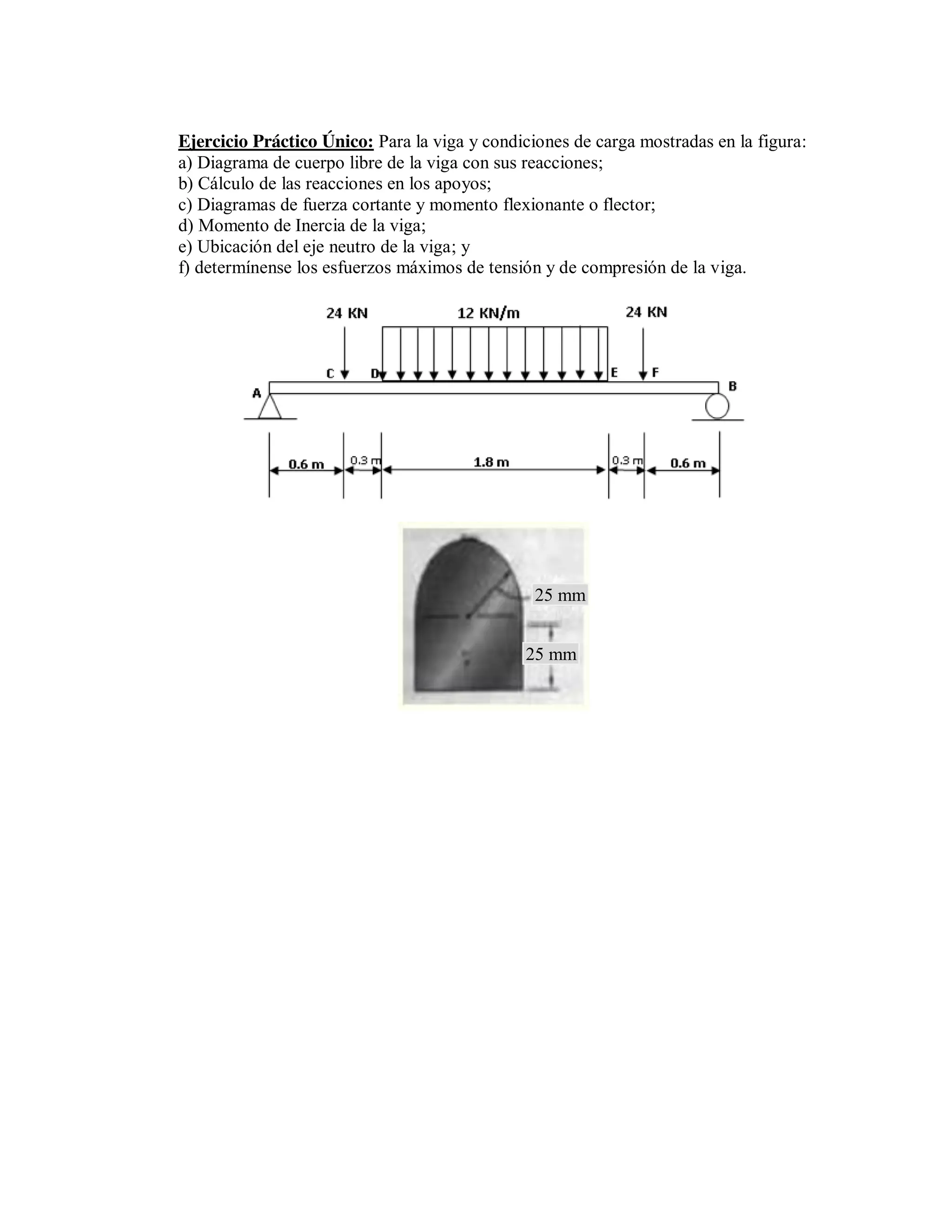 The document provides instructions to analyze a beam with given dimensions and loading conditions shown in a figure. It lists the following tasks: