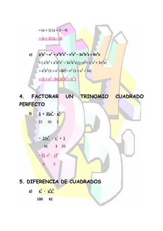6) Factoring a trinomial that is a perfect square by addition and subtraction.