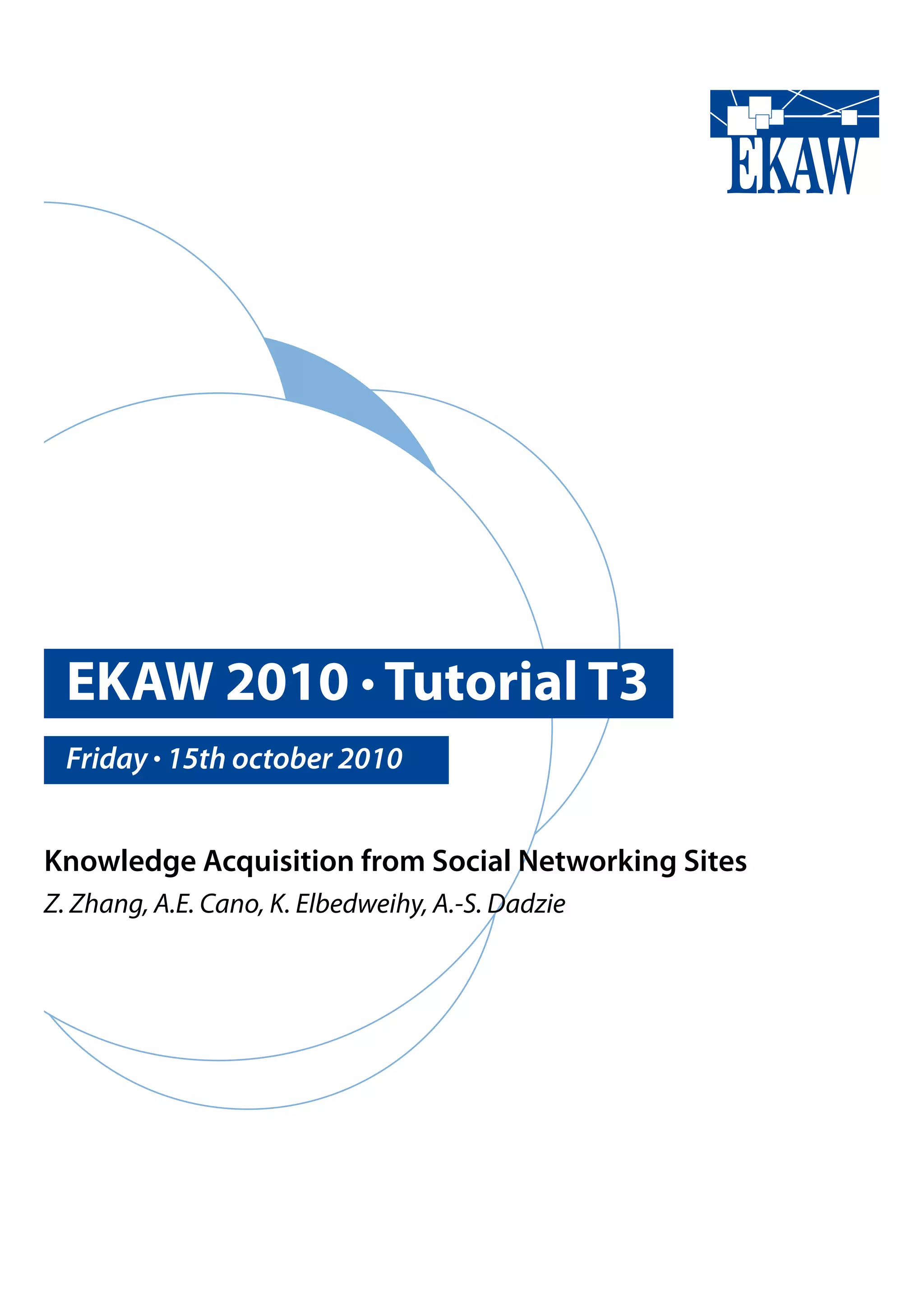 The document provides an overview of a tutorial on knowledge acquisition from social networking sites. It discusses using social networking sites as a potential source of data for research ideas, understanding the role of social networks in realizing research ideas, and learning about knowledge acquisition through content retrieval and altering, information extraction (IE) and natural language processing (NLP) tools for performing knowledge acquisition. The tutorial aims to understand the potential of using data from social networking sites for knowledge management research and applications in various fields.