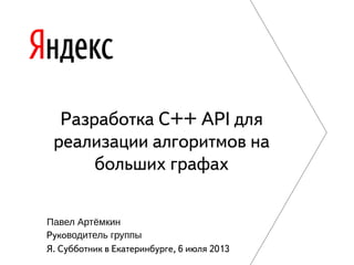 Документ представляет собой описание разработки C++ API для реализации алгоритмов на больших графах, особенно алгоритма Дейкстры. Рассматриваются вопросы обработки данных, сложности передачи данных по сети и хранение графа в памяти или на диске. Также описываются различные режимы работы и интерфейсы для отправки сообщений и взаимодействия с графами.
