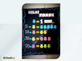 Dokumen tersebut membahas tentang penerapan sistem ekonomi token dalam pendidikan untuk mempengaruhi perilaku murid secara positif. Sistem ini memberikan token kepada murid untuk tingkah laku yang diinginkan dan token tersebut dapat ditukarkan dengan hadiah. Dokumen tersebut menjelaskan tahapan perencanaan dan pelaksanaan sistem ekonomi token mulai dari menentukan tingkah laku sasaran, jenis token dan hadiah, aturan kelas, per