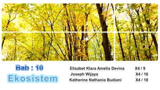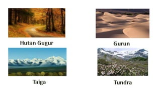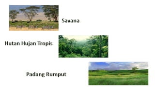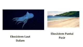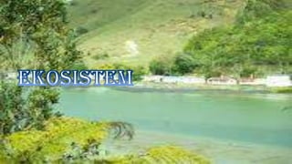Dokumen ini menjelaskan tentang habitat dan interaksi antara makhluk hidup dan lingkungan, di mana makhluk hidup bergantung pada komponen biotik dan abiotik seperti suhu, kelembapan, air, dan tanah untuk bertahan hidup. Selain itu, dijelaskan juga tentang berbagai jenis interaksi antar-individu dan antar-populasi, serta konsep ekosistem, produktivitas, dan rana makanan. Terakhir, dokumen ini mencakup tipe-tipe ekosistem serta piramida ekologi yang menunjukkan hubungan trofik dalam suatu ekosistem.