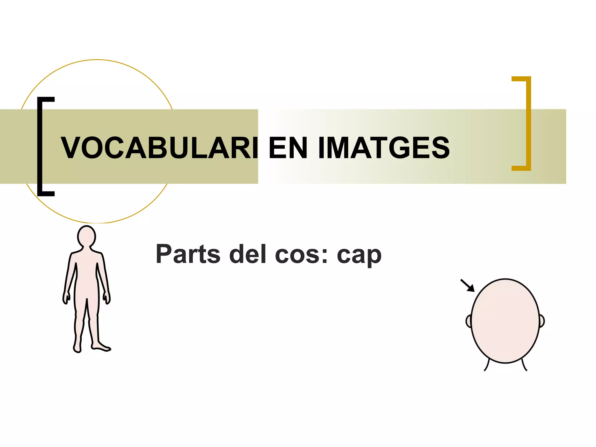 This document contains vocabulary words related to parts of the body in Catalan. It lists body parts categorized under headings like "head," "face," "eyes," "mouth," and others. Some of the specific body parts listed include cap, cara, ull, boca, nas, orella, cabell, and coll.