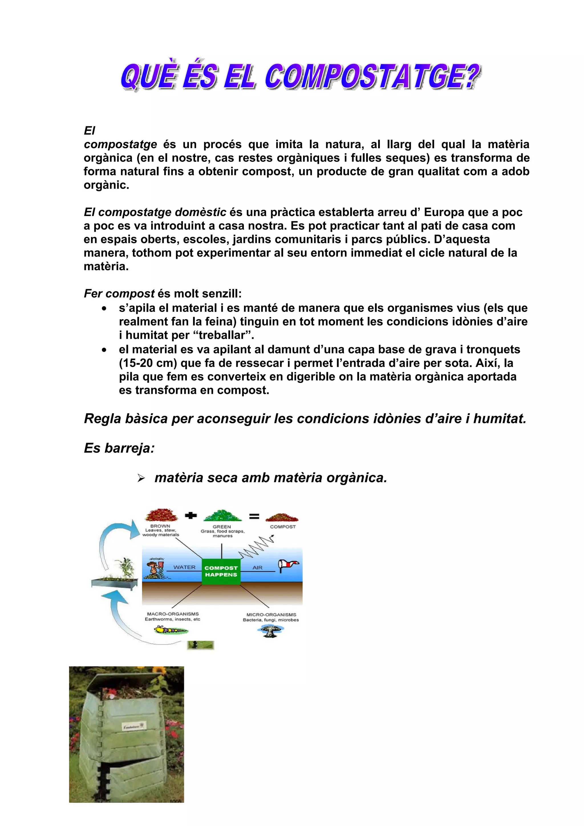 forma natural fins a obtenir compost, un producte de gran qualitat com a adob