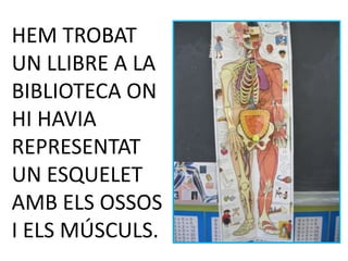 The students found an anatomy book in the library that depicted a skeleton with bones and muscles. They also found other interesting books about the human body that helped answer questions from their teacher. Nazaret brought photographs of a vulture and remains from the animal that showed bone fragments it had eaten. Alba brought x-rays showing a foot and a vertebral column. Adriana brought a pork rib bone for the class to observe.