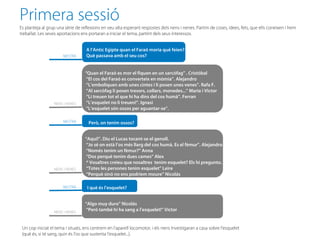 Es plantejaal grup una sèrie de reflexions en veu alta esperant respostes dels nens i nenes. Partim de coses, idees, fets, que ells coneixen i hem