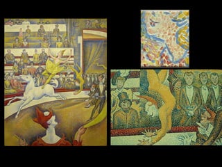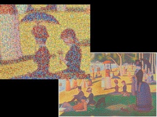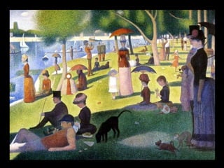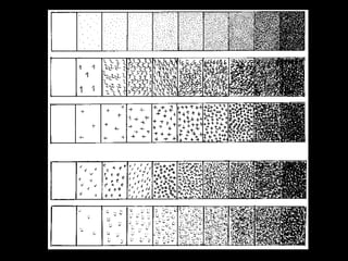 El punt 1. 2. El punt és l’element més simple del llenguatge visual. El punt gràfic es crea de la pressió simple i sense moviment de l’estri de dibuix. Per tant té forma, grandària i color. 3. 4. 5. 6. CONFIGURADOR DE COLOR Agrupant diversos punts de diferents colors, l’espectador barreja els colors per veure’n d’altres. 7. 8. 9. 10. 11. 12. 13. CONFIGURADOR DE VOLUM Segons la distància entre els punts d’un puntejat es creen zones més o menys lluminoses creant sensació de volum. 14. 15. 16. Amb la repetició de punts semblants es creen textures diverses. CONFIGURADOR DE TEXTURES 17. 18. 19. 20. 21. 22. 23. 24. 25.