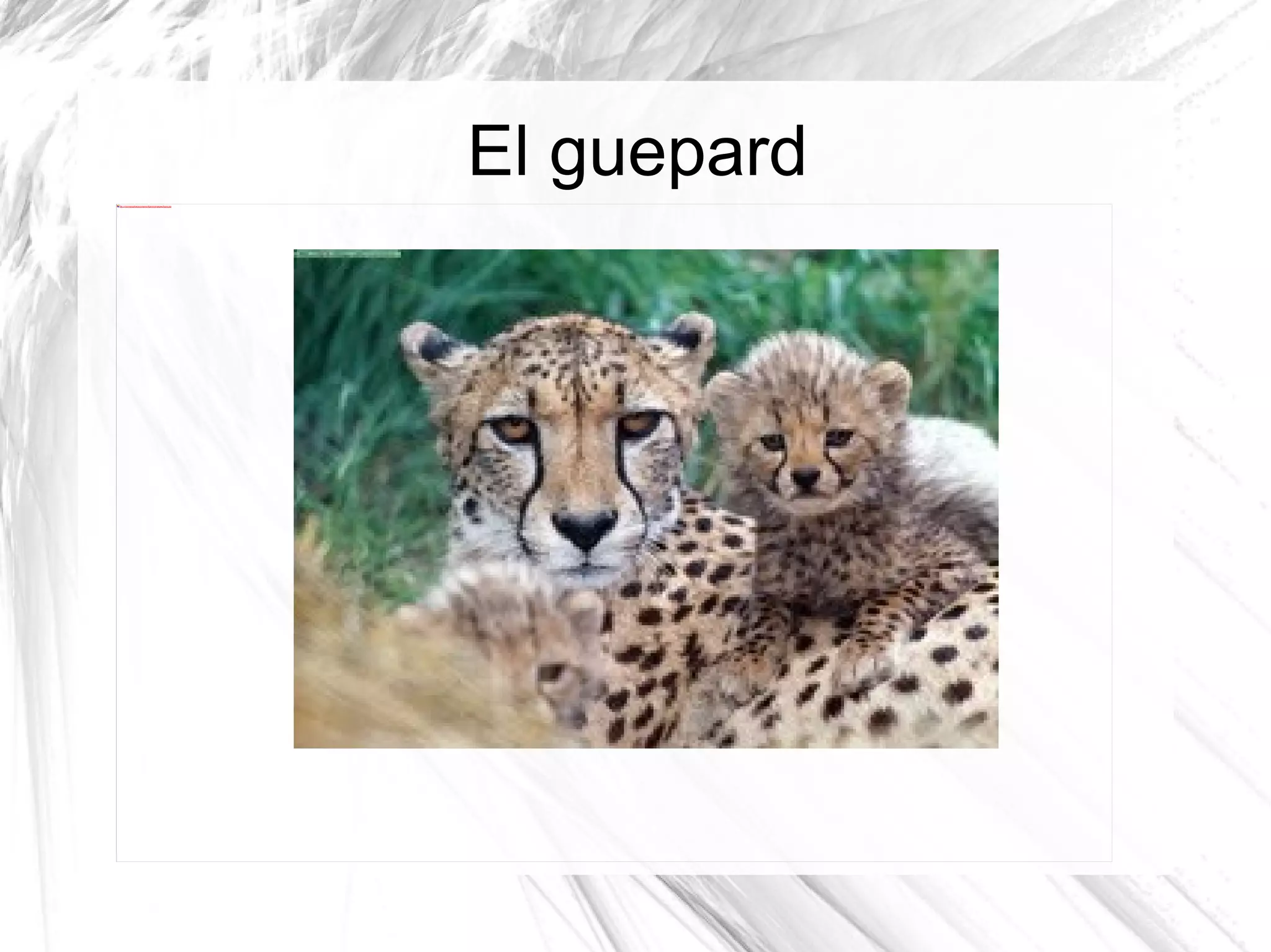 Descripció del guepardTé un cos llarg i ossos lleugers. La cua actua en l'equilibri del cos durant un gir ràpid.
