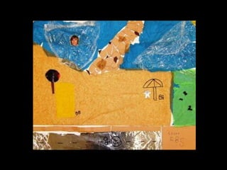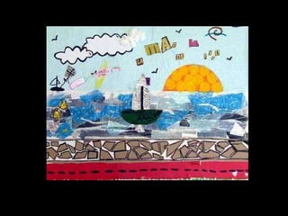 Crèdit de síntesiQUÈ HAUREM DE FER? Comenceu JA a recopilar material per fer un collage: papers, fotos, plàstics, cartrons i materials diversos. ACTIVITAT 1: ESBOÇ DESCRIPTIU I COMUNICATIU DEL PAISATGE Sortireu a la mar i caminareu per la platja. Amb el vostre equip base haureu de triar un paisatge per representar-lo després amb la tècnica del collage. Cadascú de vosaltres fareu un esbós esquemàtic del paisatge posant anotacions de quins materials emprareu per fer el collage. O sigui, que heu de dibuixar amb la idea del collage que us agradaria fer. Material que heu de portar a l’excursió: estoig amb llapis, goma i colors de fusta i fulls DIN A4.