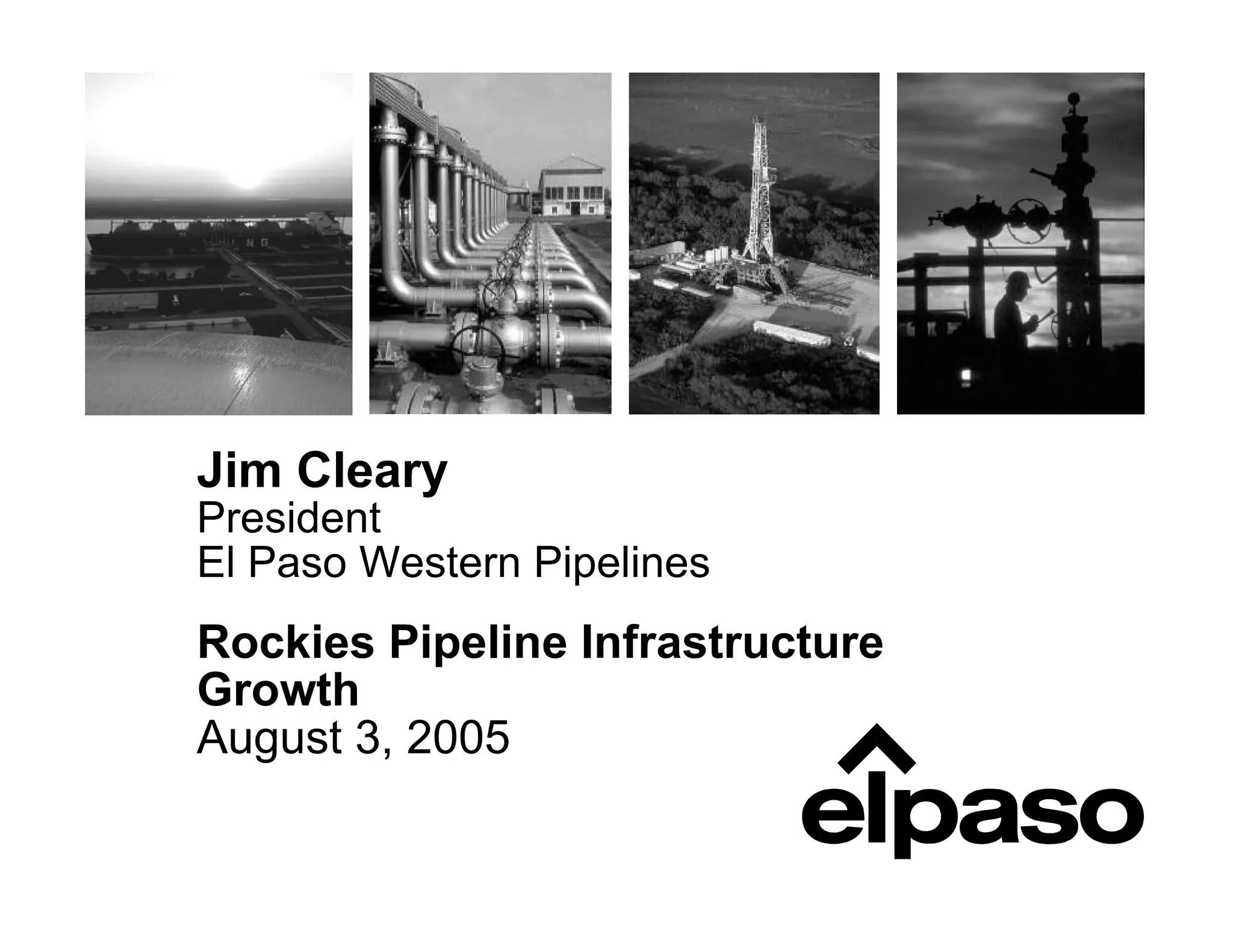 Jim Cleary, president of El Paso Western Pipelines, presented on growth in Rockies pipeline infrastructure. The presentation discussed increasing natural gas production projections for the Rockies region and expanding pipeline capacity to export surplus supply. It noted that recent expansions like the Cheyenne Plains pipeline have helped reduce price differentials between the Rockies and Henry Hub. However, further expansions will be needed over the next decade to accommodate projected growth in Rockies gas supply and meet export demand at load factors of 85-100%. Cleary concluded that while gas is precious, transportation is cheap, and connectivity is priceless for monetizing Rockies gas production.