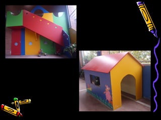 This document lists several rooms and areas in a building including a computer lab, art corner, and library. It also mentions a patio and a room for physical education. The document provides a high-level overview of the spaces in a facility without additional context or details.