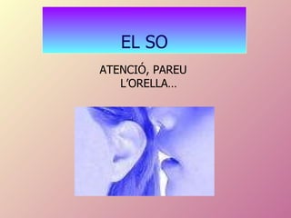 El so ésuna forma d’energia Es transmet per ones que: Es propaguen en totes direccions Perden força amb la distància Necessiten un medi per propagar-se