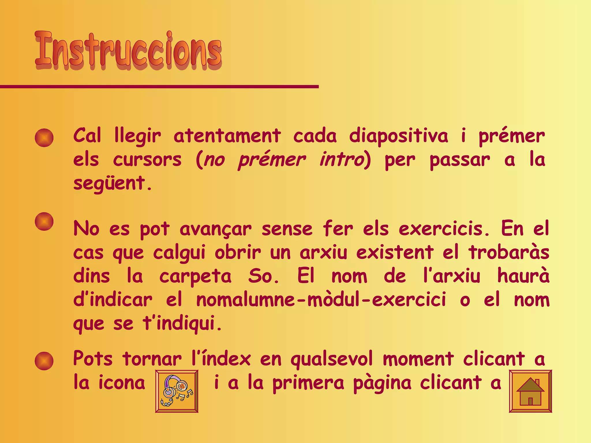 Cal llegir atentamentcada diapositiva i prémer