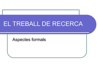 La presentació delTdR Les citacions En un treball se citen sovint textos d’autors consagrats per reforçar certes afirmacions o per enfortir algun comentari que s’hi exposa. Els fragments que se citen han de tenir una extensió raonable i caldrà escriure’ls entre cometes.