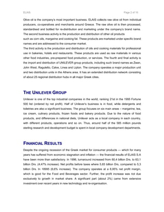 ELAIS S.A. is a major Greek food producer that implemented an integrated logistics system using wireless portable terminals. This allowed them to [1] guide warehouse workers efficiently, track materials in real-time, and eliminate costly errors. As a result, ELAIS saw reductions in lead times (16.6%), errors (over 96%), estimated error costs (86.4%), and inventory losses (94.1%). It also decreased warehouse labor needs by 35% and streamlined operations. The project delivered significant cost savings and quality improvements throughout ELAIS's supply chain.